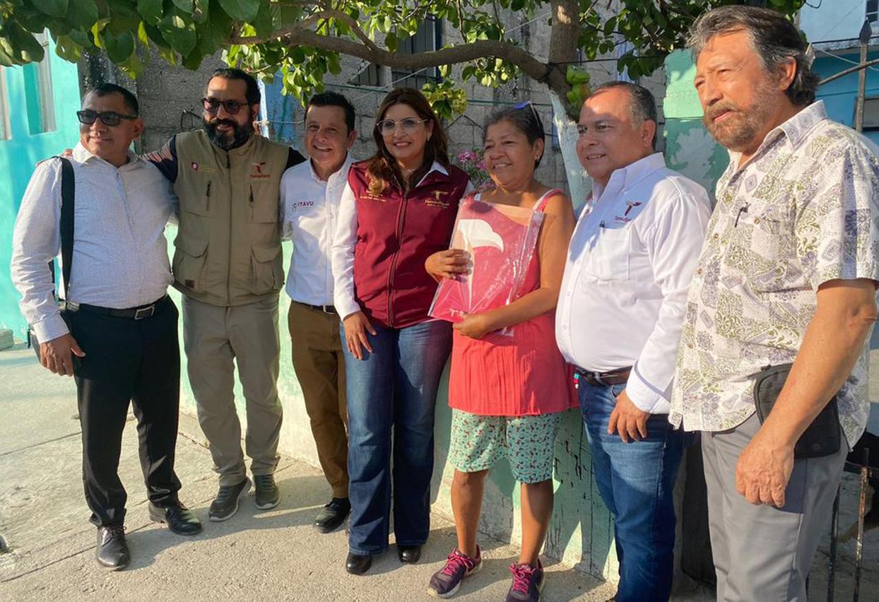 Acompañada del coordinador de delegaciones del Instituto Tamaulipeco de Vivienda y Urbanismo (ITAVU), Germán Fernández Guzmán, del delegado en Tampico, José Antonio Marín Flores y del coordinador de fortalecimiento institucional, Rommel Samuel Silva Saldaña visitaron los domicilios de las personas que previamente realizaron el procedimiento necesario para obtenerlas.