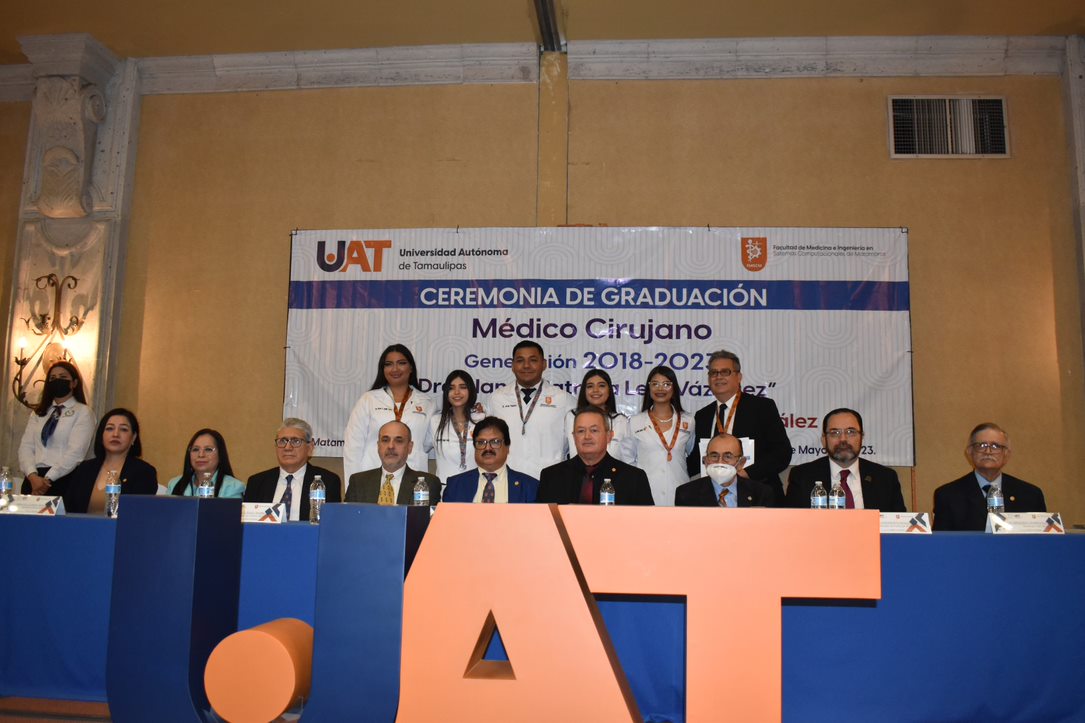 En cumplimiento con su misión de formar profesionales competentes en el área de la salud, la Universidad Autónoma de Tamaulipas (UAT) entregó a la sociedad setenta y cinco jóvenes que concluyeron la carrera de Médico Cirujano en la Facultad de Medicina e Ingeniería en Sistemas Computacionales de Matamoros.