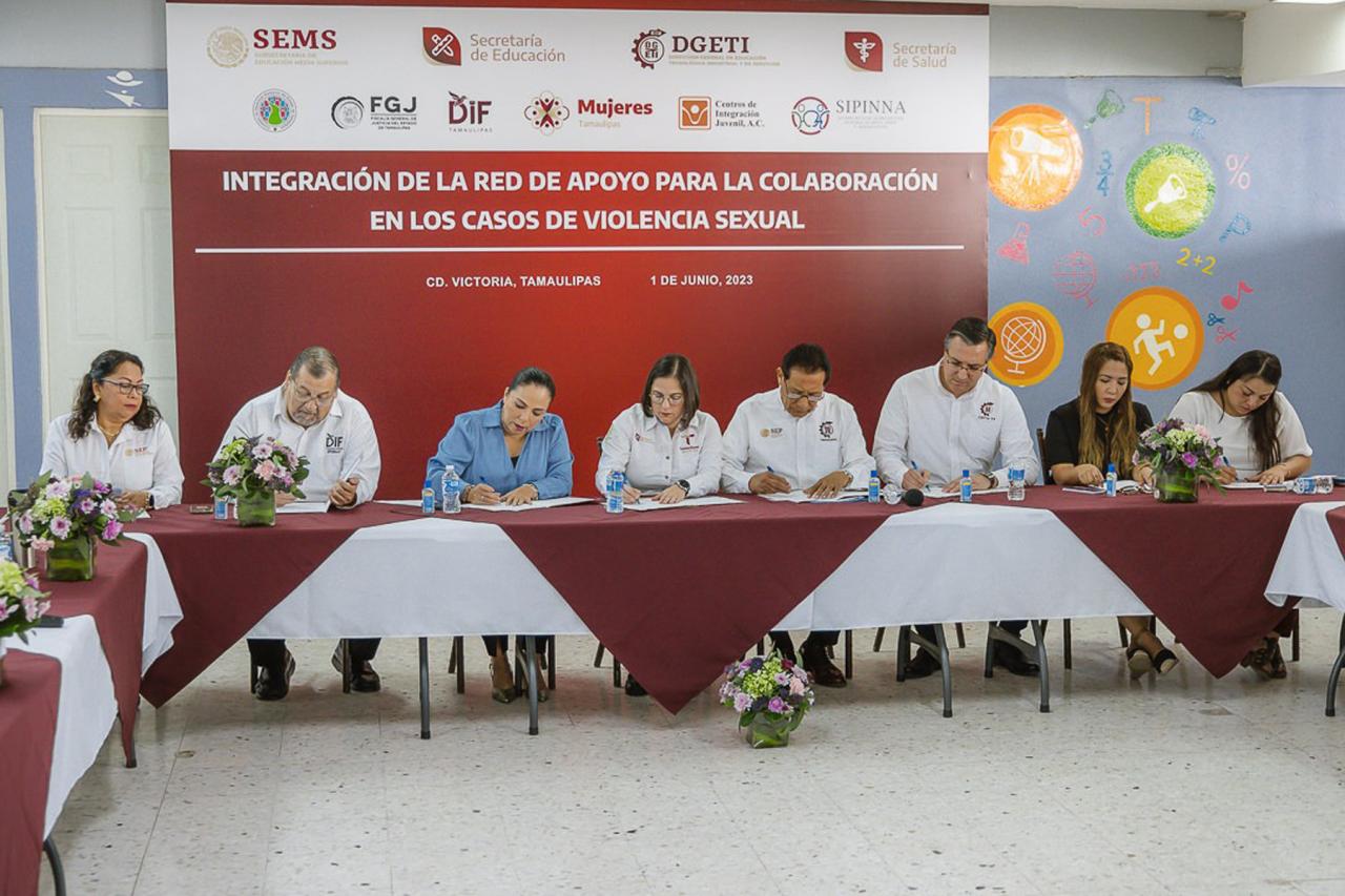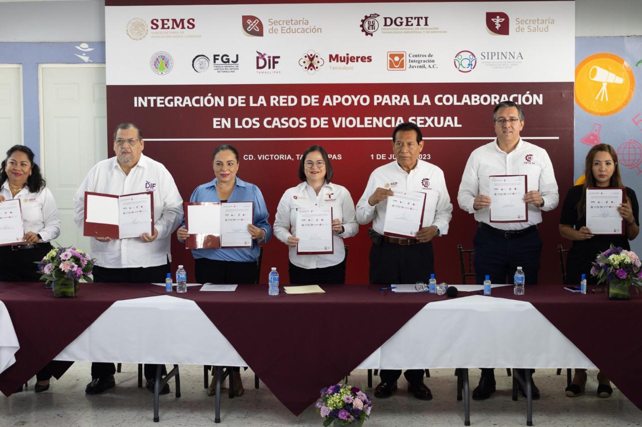 Esta red de apoyo está integrada por instituciones estatales y federales como DIF Tamaulipas, SET, Secretaría de Salud, Secretaría de Bienestar, Sistema Estatal de Protección Integral de Niñas, Niños y Adolescentes, Comisión Estatal de Derechos Humanos, Fiscalía General de Justicia del Estado, Centros de Integración Juvenil y Subsecretaría de Educación Media Superior y Superior.