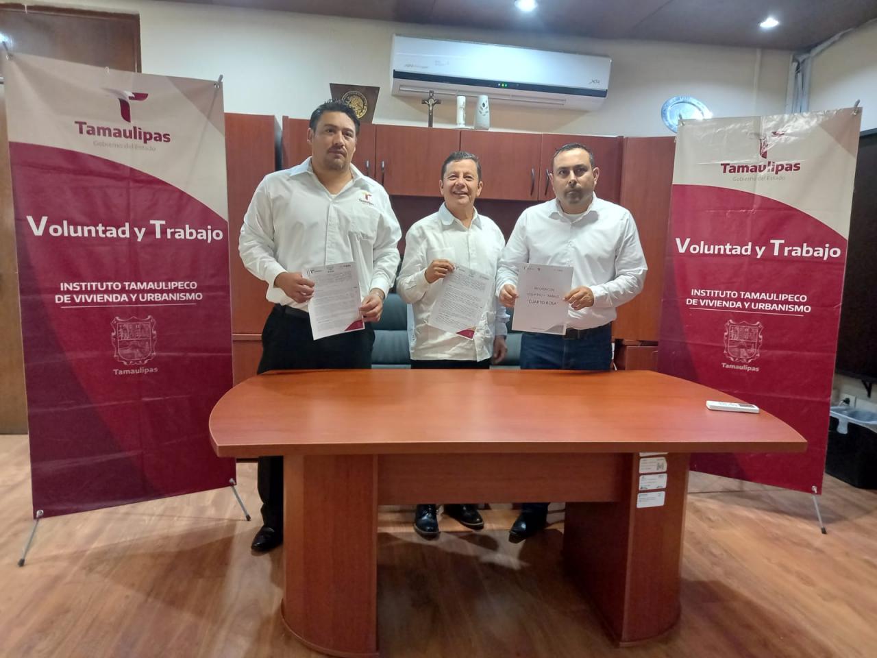 Ciudad Mante Tamaulipas. - Con la firme voluntad de implementar en Ciudad Mante el programa “Cuarto Rosa”, el delegado del Instituto Tamaulipeco de Vivienda y Urbanismo (ITAVU), en esa localidad, Fernando Castelán Larios y el presidente municipal, Noé Ramos Ferretiz, firmaron un convenio que permite iniciar las primeras 10 acciones para proporcionar viviendas dignas mejorando su condición a las familias que por alguna circunstancia viven en hacinamiento.