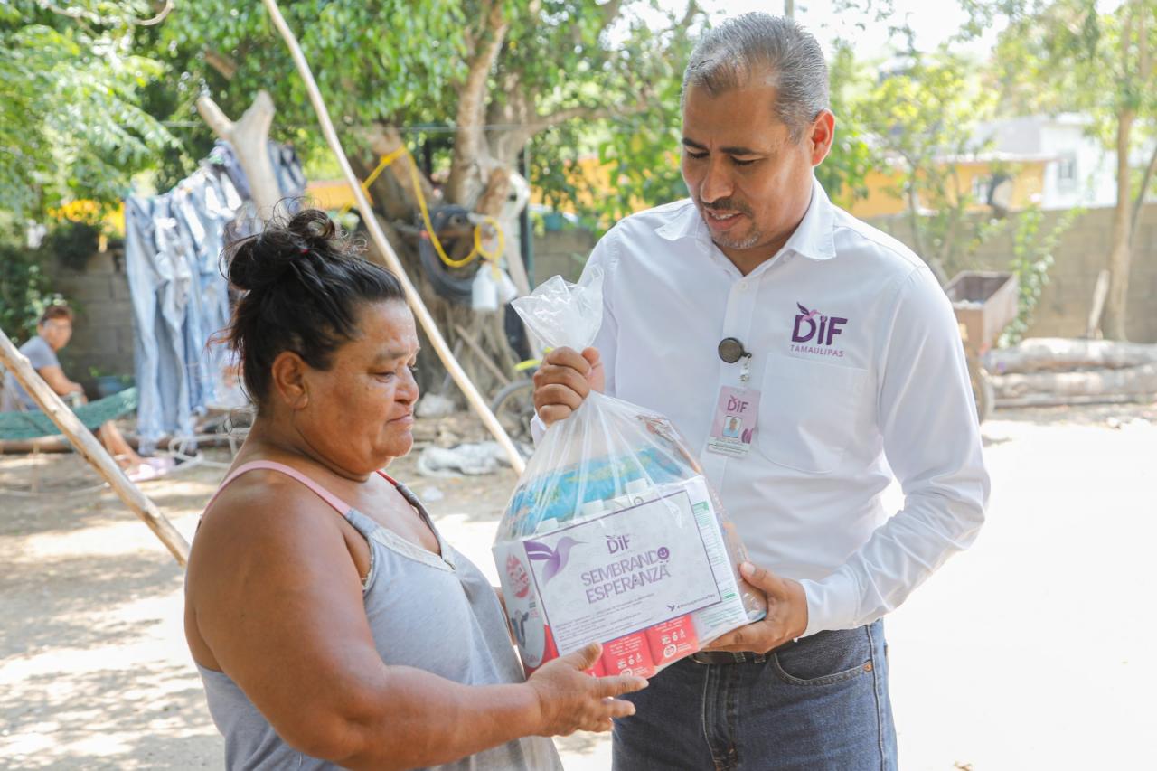 Ciudad Victoria, Tamaulipas. Para contribuir a un estado nutricional adecuado de niñas y niños de entre 6 meses y 3 años 11 meses de edad, la presidenta del Sistema para el Desarrollo Integral de la Familia (DIF) Tamaulipas la doctora María Santiago de Villarreal, dio inicio a la entrega de las dotaciones alimentarias del programa “Sembrando esperanza”