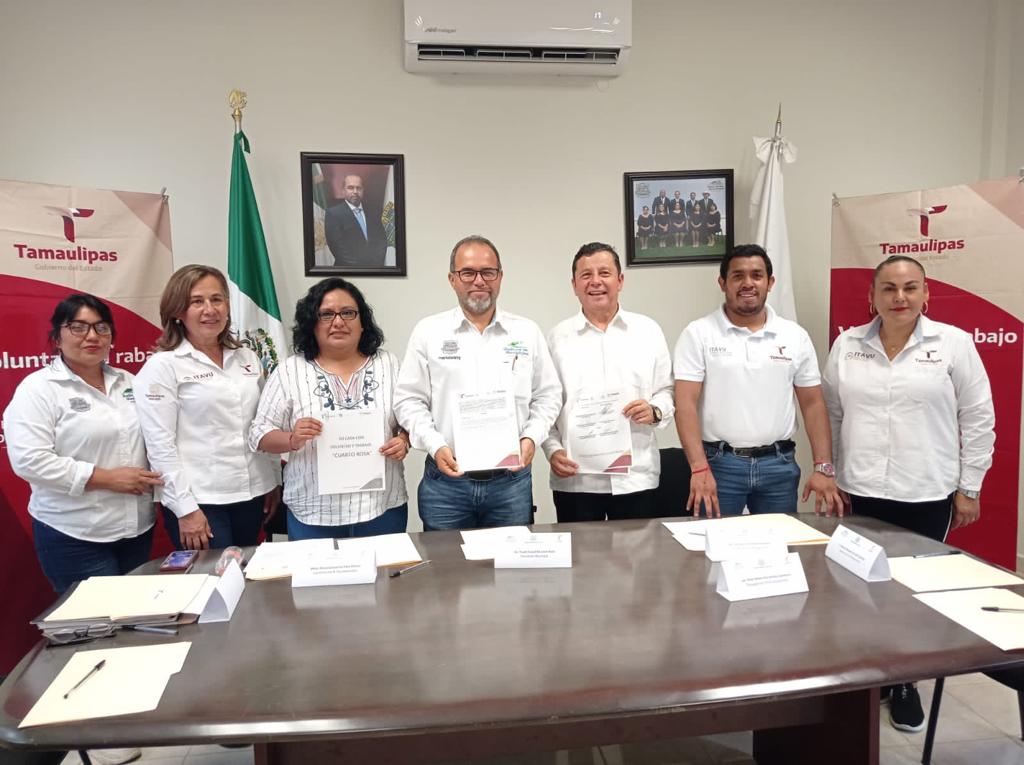 Firmaron el convenio de inicio del programa, el delegado de ITAVU en Xicoténcatl, Elton Alexis Hernández Camacho y el presidente municipal de Gómez Farías, Frank Yussef de León Ávila, coordinando entre los dos niveles de gobierno el trabajo mediante el cual se aplica un fondo compartido para la construcción de los “Cuartos Rosas”.