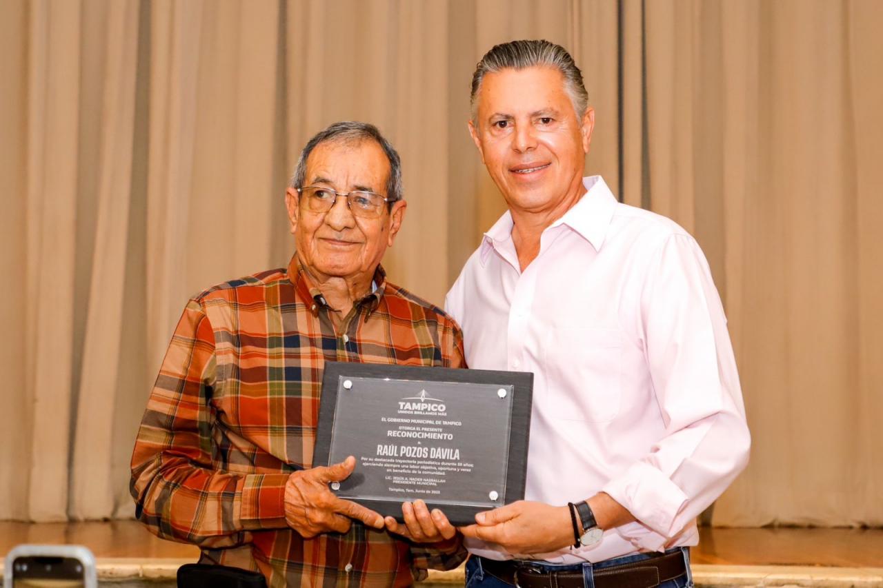 Durante la reunión con los comunicadores, el jefe edilicio entregó un reconocimiento al periodista Raúl Pazos Dávila por celebrar 59 años en el ejercicio de la profesión; y extendió este reconocimiento a cada uno de los presentes, por asumir cada día el noble compromiso de informar con veracidad y objetividad a la población tampiqueña.