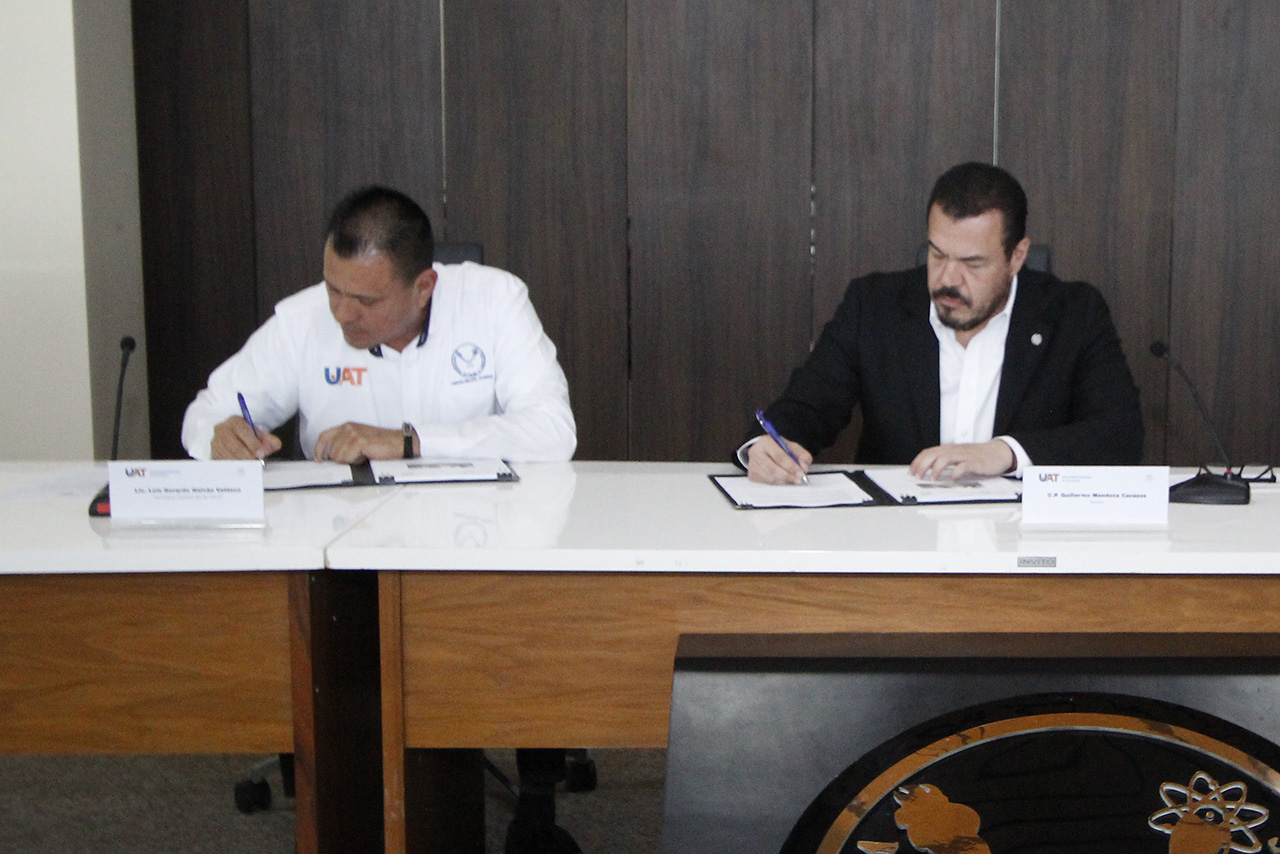 La firma del acuerdo, celebrada en el Centro de Gestión del Conocimiento del Campus Victoria, fue presidida por el rector, C. P. Guillermo Mendoza Cavazos, y el secretario general estatal del SUTAUAT, Mtro. Luis Gerardo Galván Velazco; ante la presencia del Lic. José Ives Soberón Mejía, director general del Centro de Conciliación Laboral del Estado.