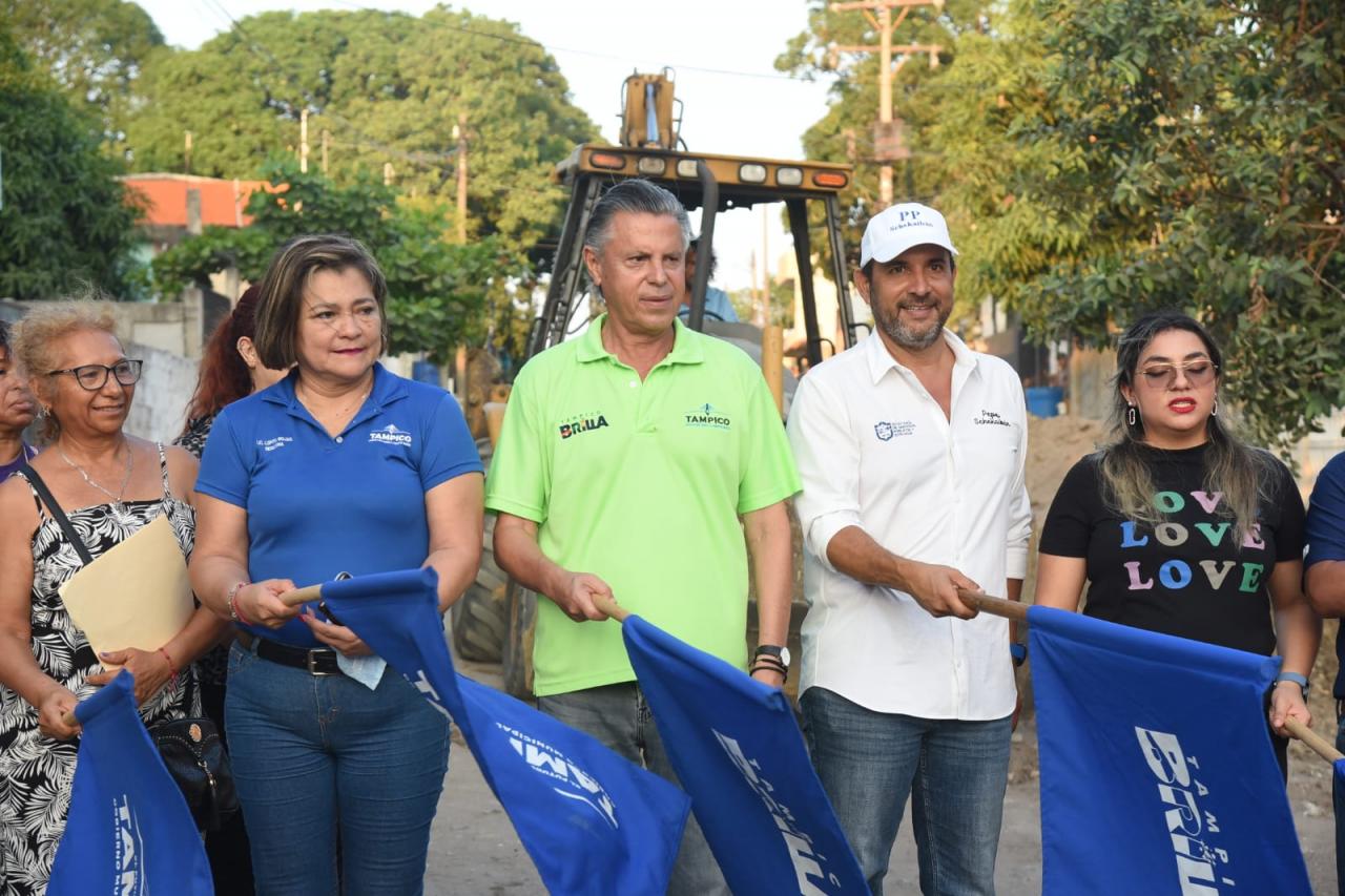 La amplia jornada de inicio de obra arrancó en la colonia Nuevo Progreso donde, Chucho Nader dio el banderazo a la pavimentación a base de concreto hidráulico de la calle Nicolás Bravo entre Francisco Villa y Álvaro Obregón.