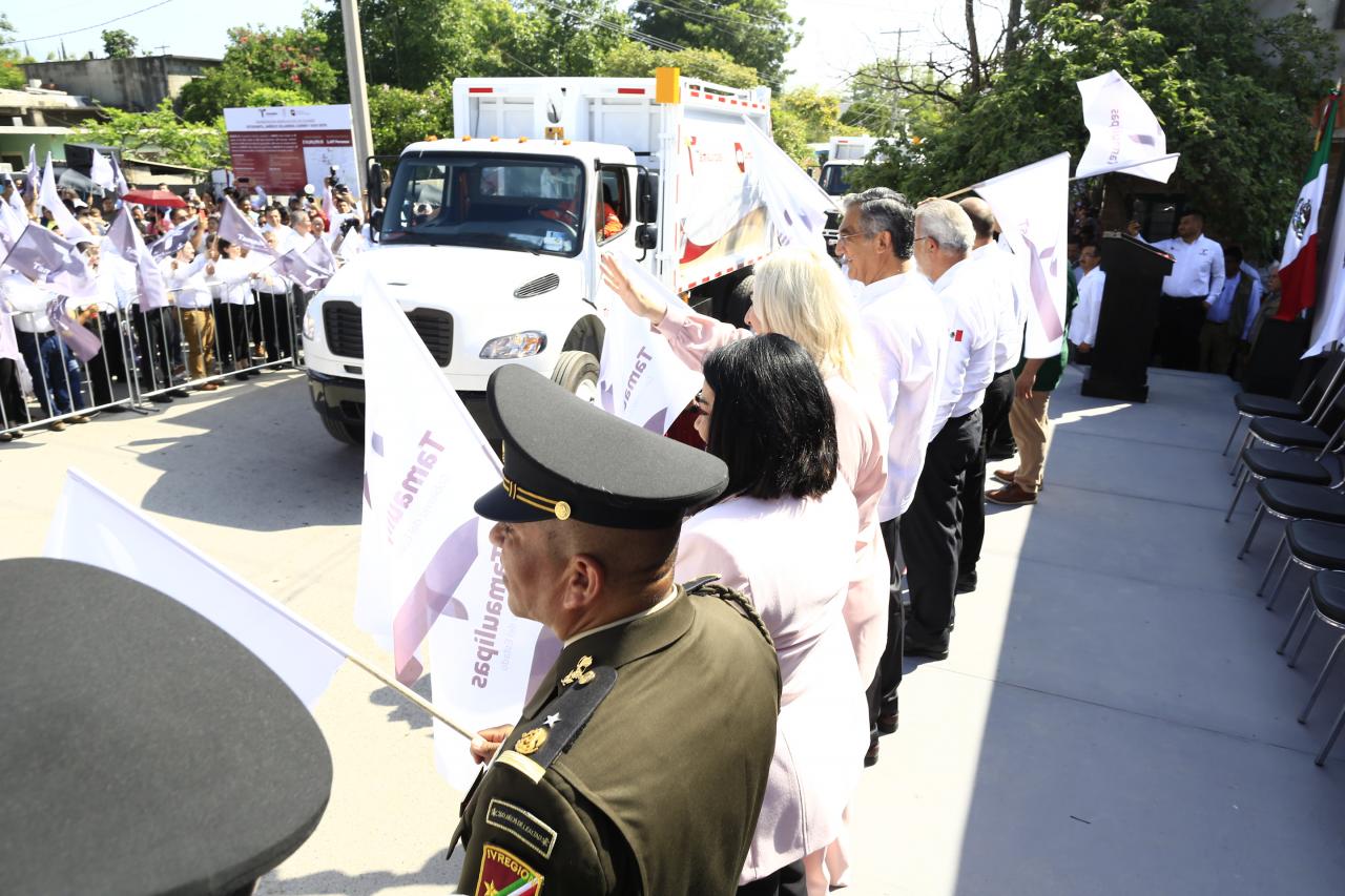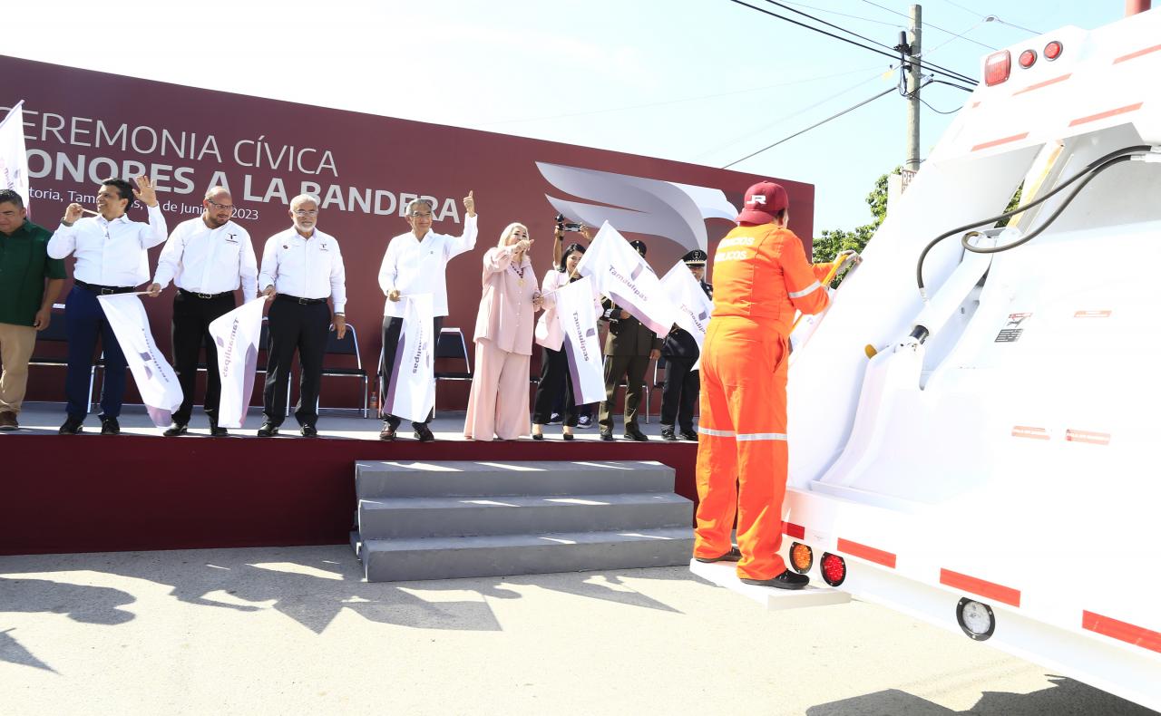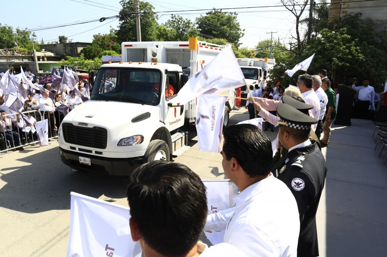 “Otra acción que hoy hace historia, es la entrega de 12 modernos y equipados camiones recolectores de basura que, a partir de hoy mismo se ponen al servicio de los victorenses”, afirmó.