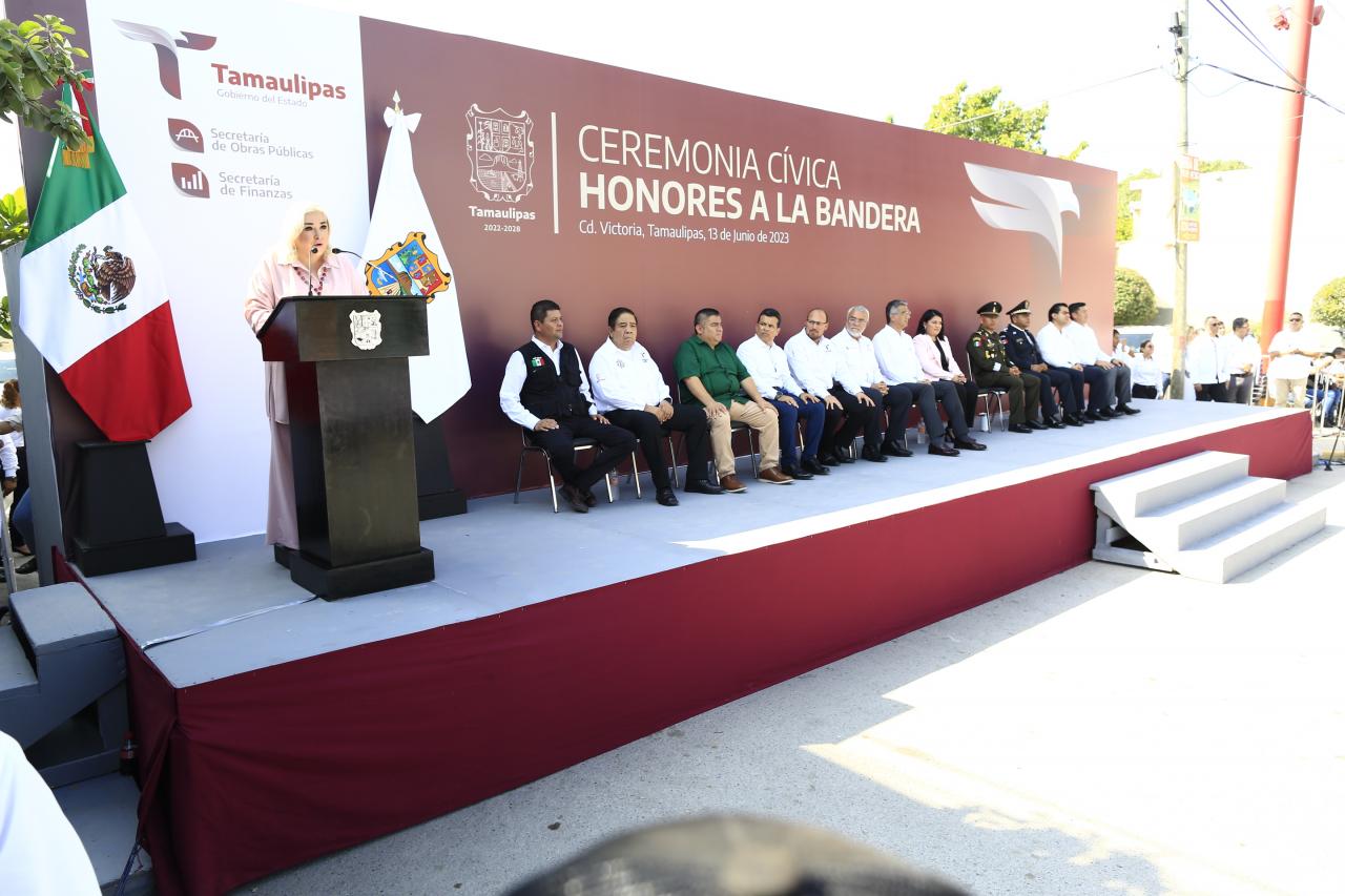 En la colonia que lleva el nombre de su padre, el ex gobernador Américo Villarreal Guerra, punto emblemático donde inició sus campañas para senador y para gobernador y ante residentes del sector, quienes lo recibieron con muestras de apoyo y con gritos de “Gobernador, gobernador” y “Ahora sí hay gobernador”, el mandatario, quien encabezó ahí la ceremonia cívica de honores a la bandera, afirmó, que ahora tienen más recursos para hacer más infraestructura, en beneficio de la ciudadanía.