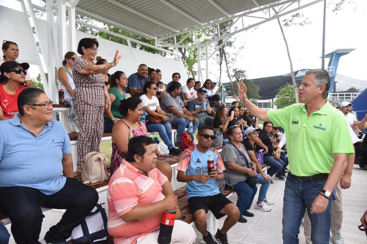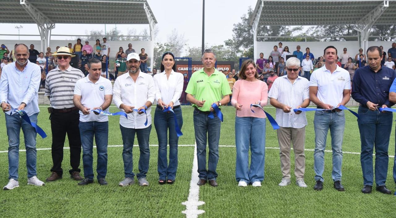 Añadió que en las próximas semanas se continuará con la construcción de una nueva cancha de pasto sintético para el desarrollo del "tochito" disciplina que, dijo, está adquiriendo popularidad entre la niñez y juventud tampiqueña.