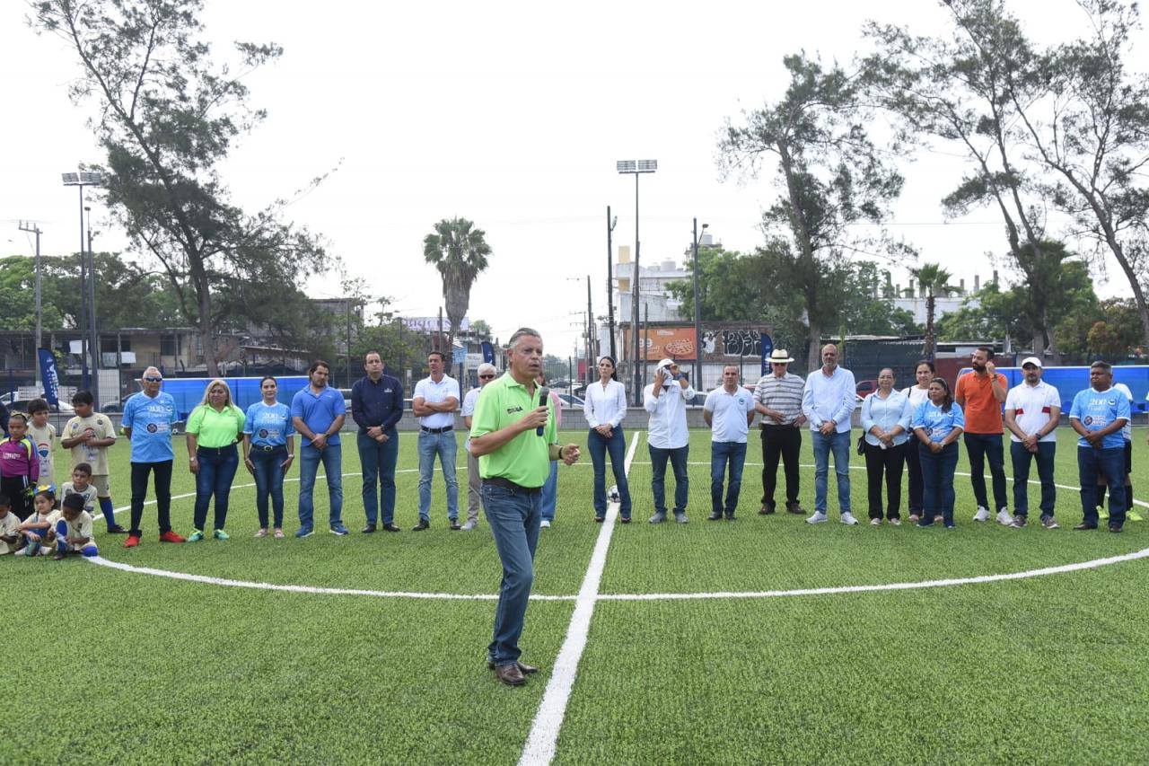 Sobre los trabajos efectuados en el histórico campo deportivo, el mandatario explicó que se instaló pasto sintético, cerca perimetral, nuevas gradas e iluminación especial, a fin de que la práctica del deporte se realice en cualquier momento del día y durante todos los días del año.