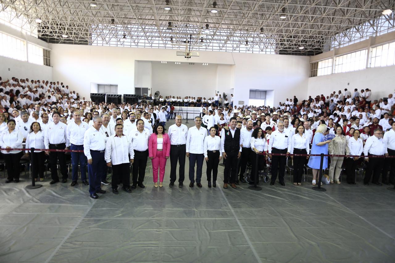 Al presidir este lunes la ceremonia de honores a la bandera en el gimnasio “Manuel Raga Navarro”, el mandatario estatal afirmó que se trabaja en adecuar y acondicionar los espacios deportivos.