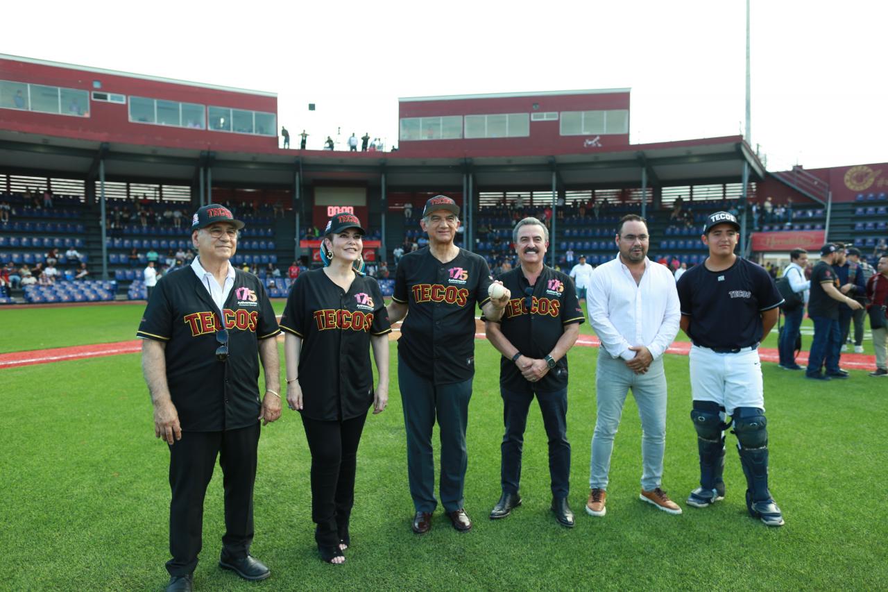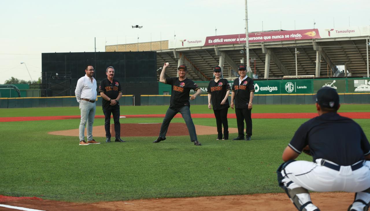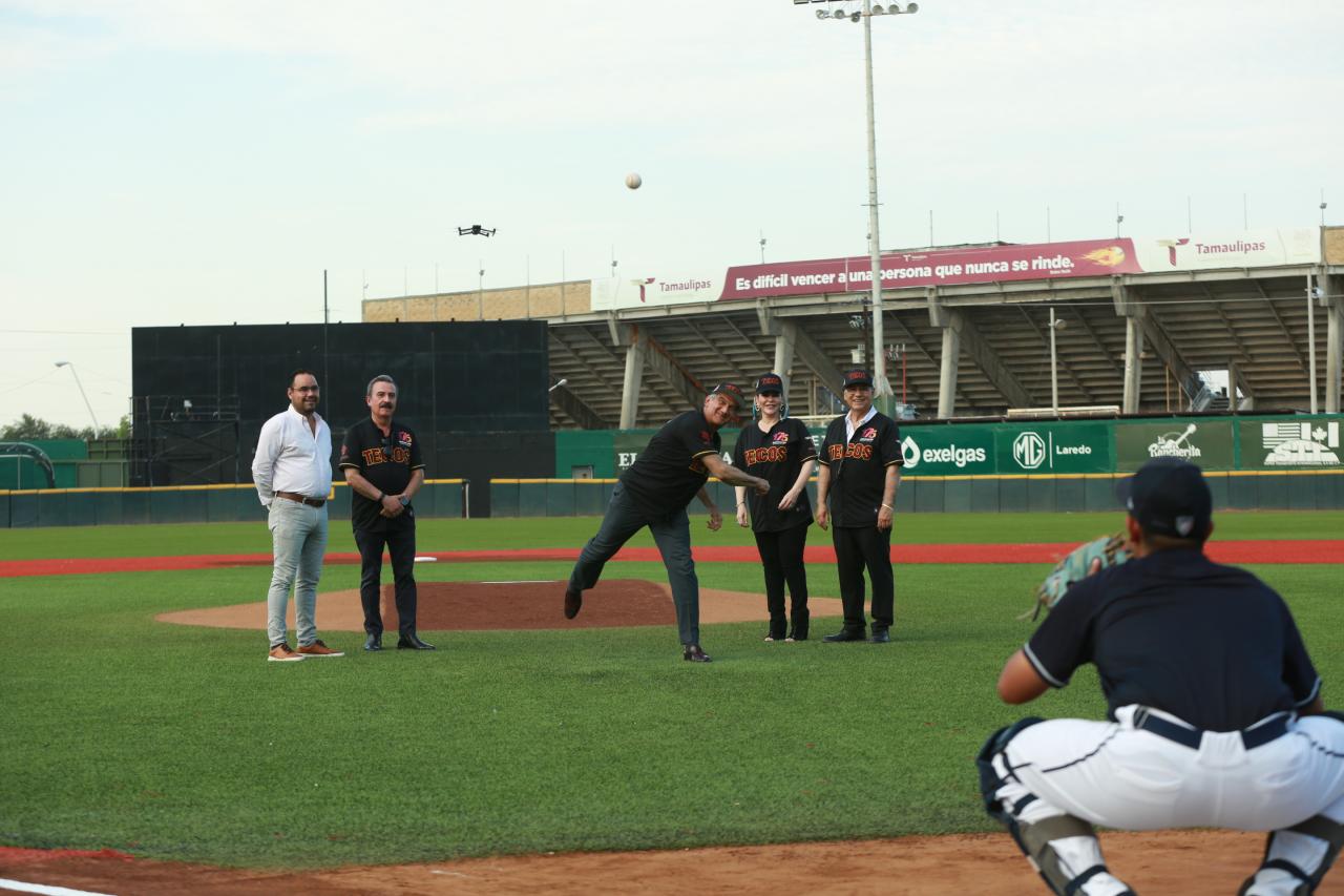 Nuevo Laredo, Tamaulipas.- Como parte de los festejos por el 175 aniversario de esta ciudad, el gobernador del Estado, Américo Villarreal Anaya, realizó el lanzamiento de la primera bola durante el partido entre los Tecolotes de los Dos Laredos y los Mariachis de Guadalajara.