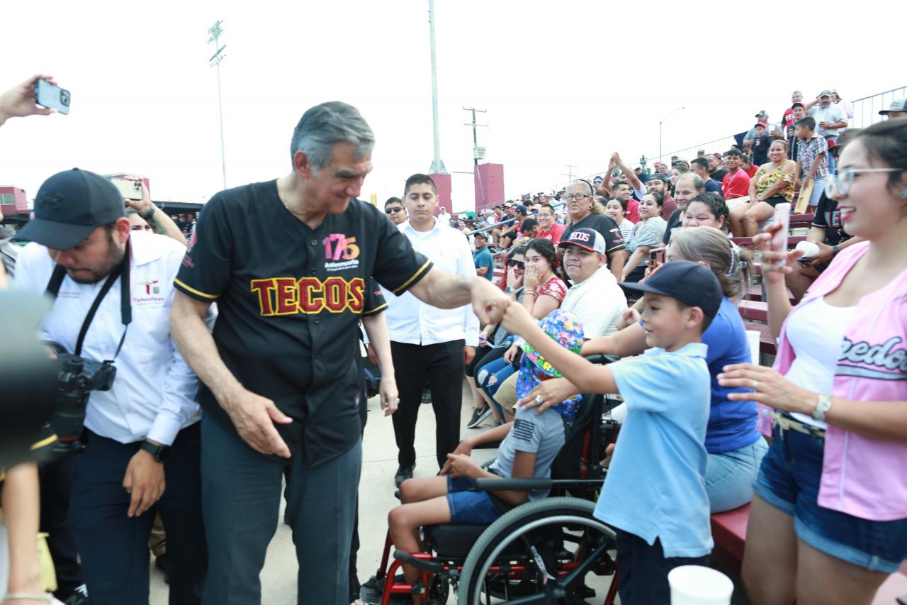 La tarde de este lunes, en el parque de beisbol "La Junta", de esta ciudad fronteriza, el mandatario tamaulipeco junto a la presidenta municipal, Carmen Lilia Canturosas Villarreal, disfrutó del partido correspondiente a la Liga Mexicana de Beisbol.