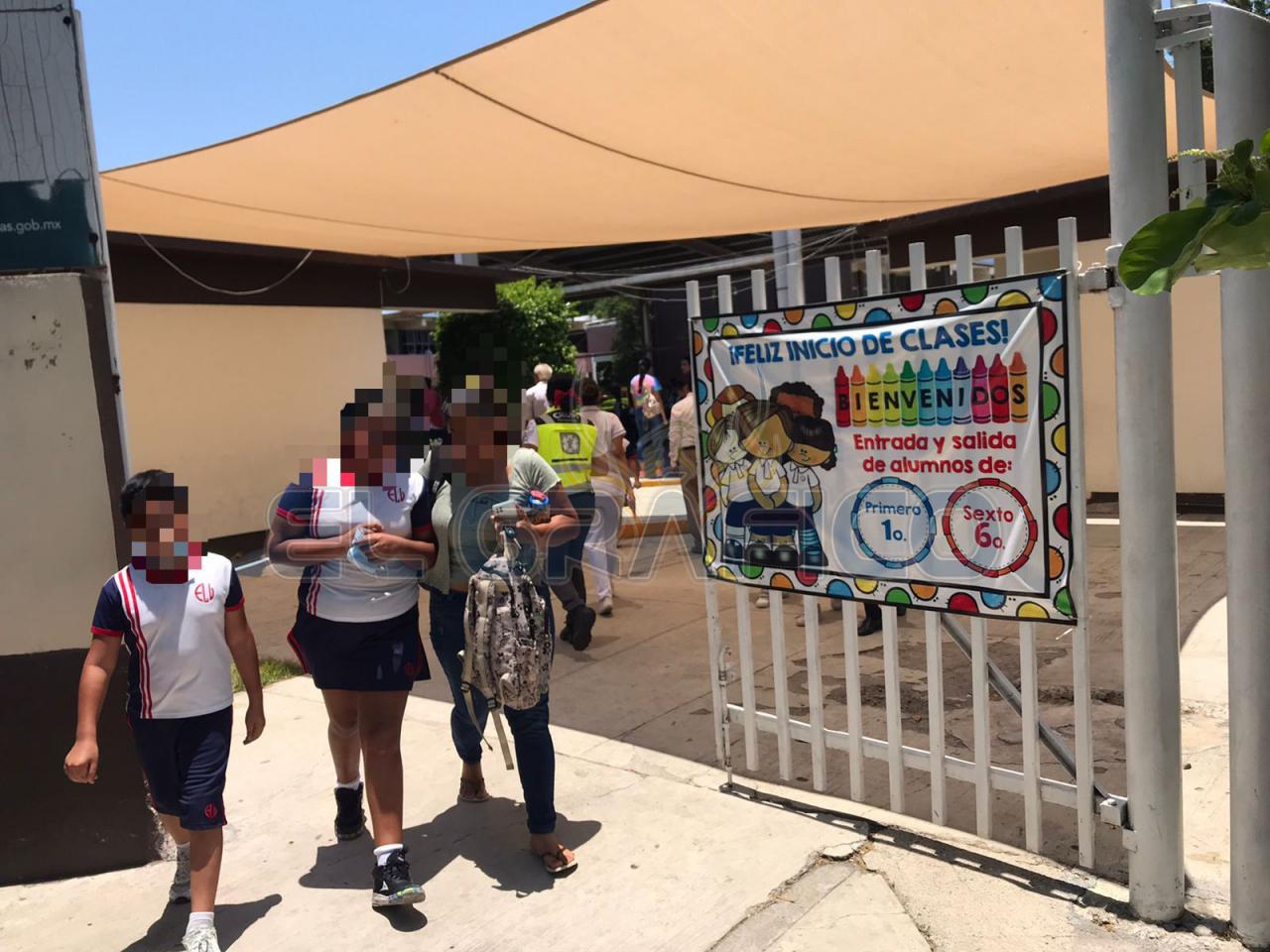 Con el termómetro por arriba de los 40 grados centígrados acudieron a la Escuela Primaria Leona Vicario varias ambulancias de Cruz Roja Mexicana y Protección Civil.