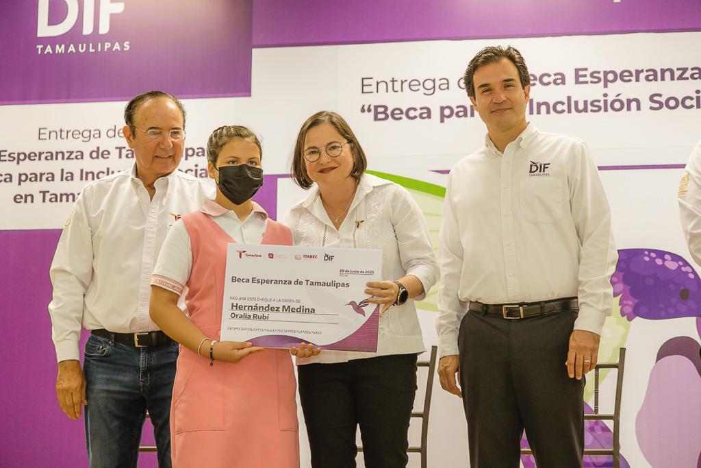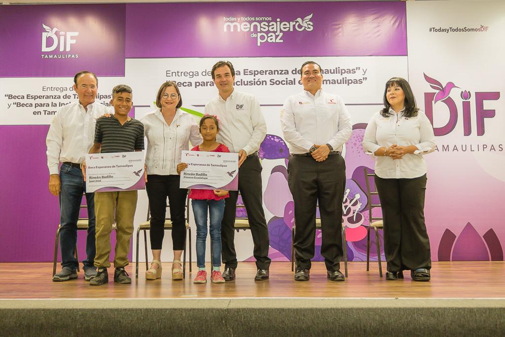 Ciudad Victoria, Tamaulipas.- El Sistema DIF Tamaulipas que preside la doctora María de Villarreal, en coordinación con el Instituto Tamaulipeco de Becas, Estímulos y Créditos Educativos (ITABEC), reactivó la entrega de mil 810 becas a niñas, niños y jóvenes, en situación de vulnerabilidad para garantizar el acceso y permanencia en el sistema educativo y contribuir así a disminuir la deserción escolar.
