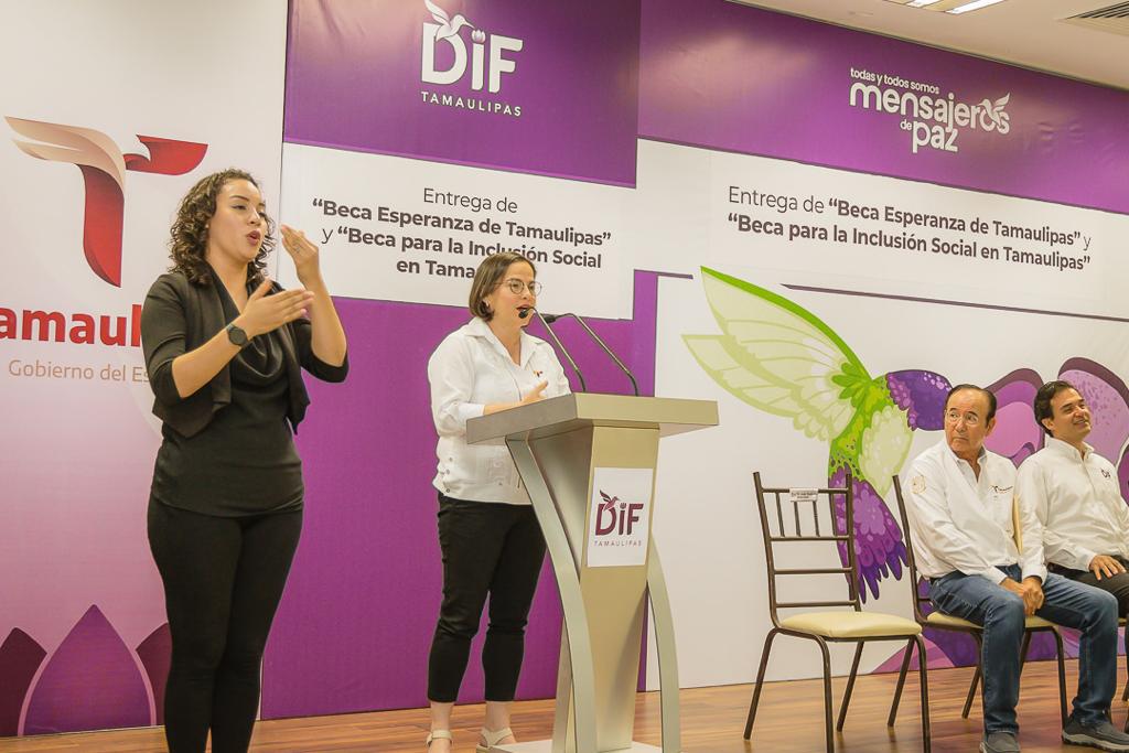 Por su parte, las becas “Por la Inclusión Social en Tamaulipas” estarán beneficiando a estudiantes con alguna discapacidad que acuden al Centro de Rehabilitación y Educación Especial (CREE), al Centro de Autismo y del Programa Lazos de Esperanza que impulsa la presidenta del DIF Estatal en los 43 municipios de la entidad.