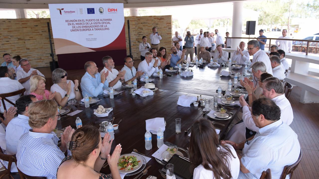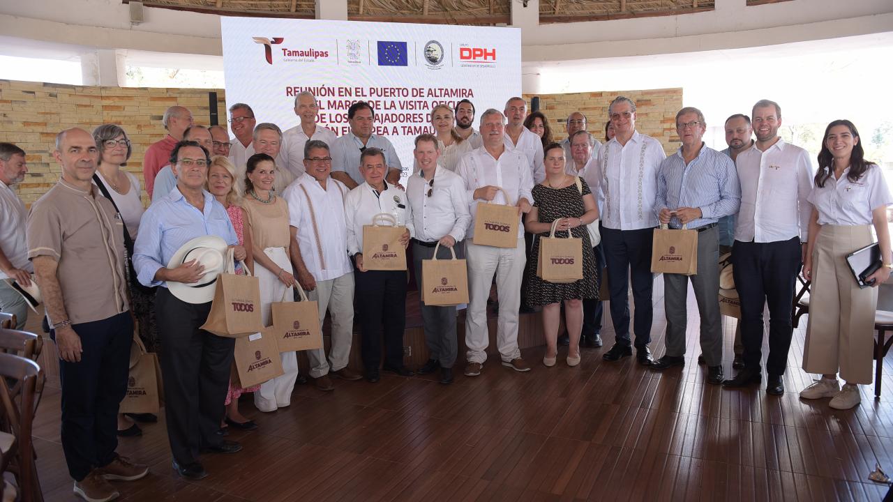 "El puerto industrial de Altamira, es un referente de la fortaleza logística de Tamaulipas y emblema de la vocación productiva del sur de Tamaulipas, una de las regiones más competitivas de México", dijo la secretaria de Desarrollo Económico, Ninfa Cantú Deandar en su mensaje a la delegación de diplomáticos europeos.