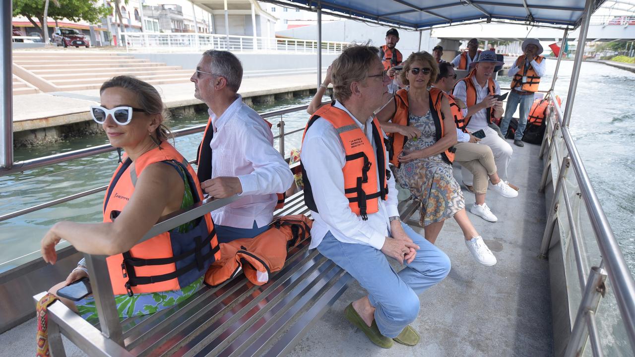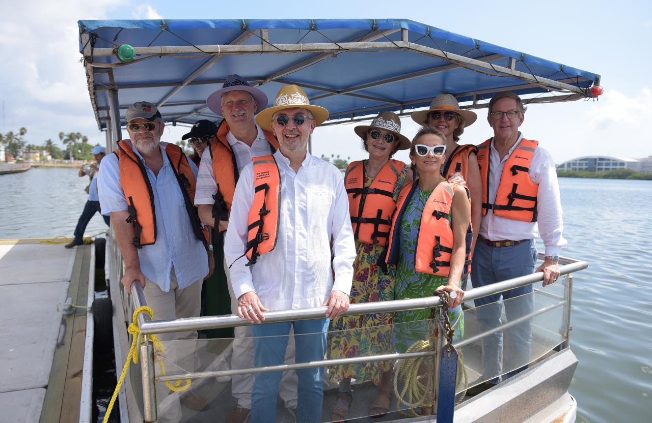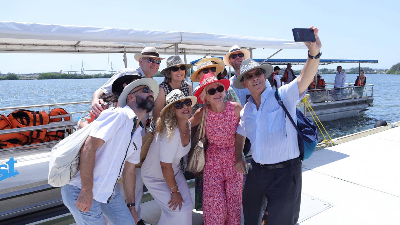 A media mañana, la delegación diplomática tomó una embarcación y navegaron por casi una hora en la Laguna del Carpintero y el Canal de la Cortadura y aunque esperaron ansiosos avistar a algún "juancho", esta vez, los famosos cocodrilos que habitan en este sitio no se dejaron ver y fueron solo algunas iguanas las que se llevaron las mejores fotos del recorrido.