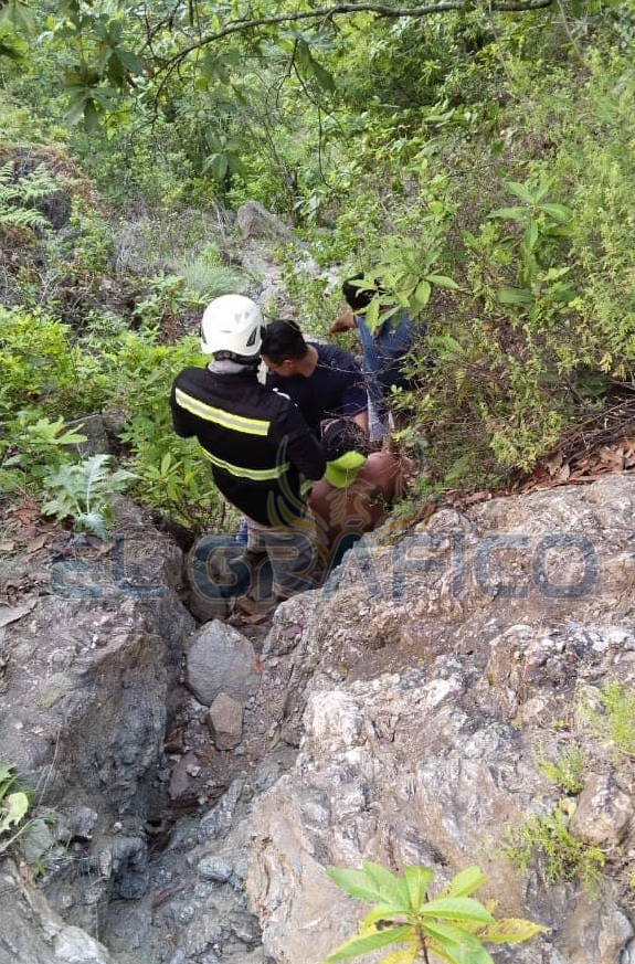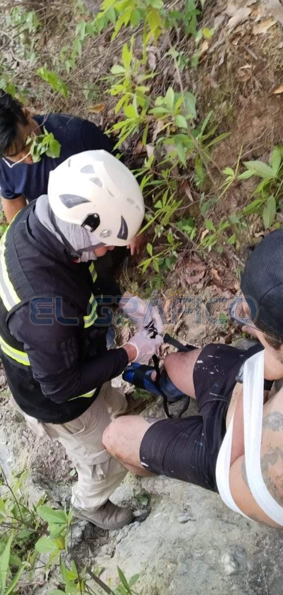 Al perder el control de su motocicleta y caer a un barranco de aproximadamente diez metros de profundidad en “Los Troncones”, un motociclista resultó con una pierna y un hombro fracturados.