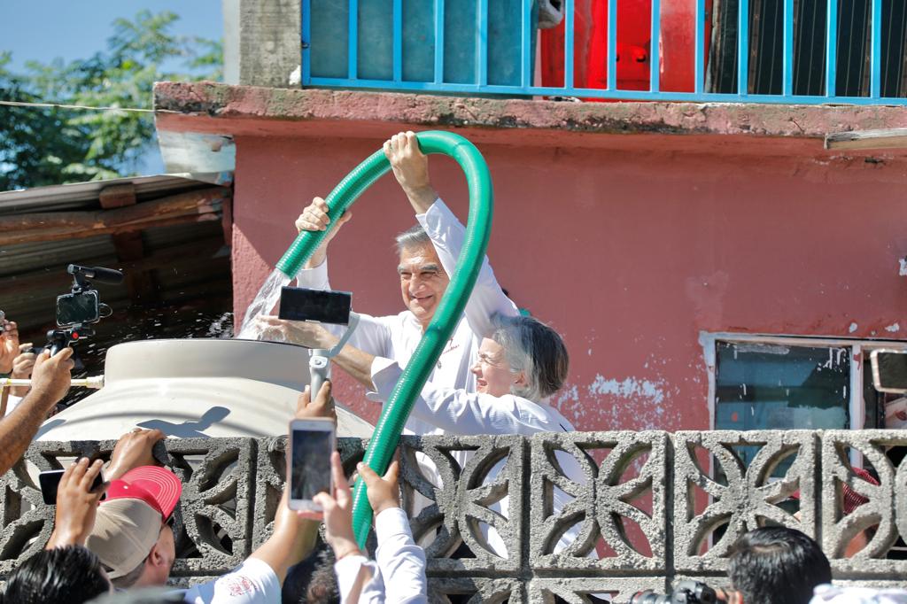 Ciudad Victoria, Tamaulipas. -Cumpliendo uno de los compromisos que se solicitó en el arranque del programa “Lazos de Bienestar”, el Sistema DIF Tamaulipas que preside la doctora María Santiago de Villarreal, llevó hasta el polígono de la colonia Luis Echeverría de esta capital, agua potable mediante las 12 pipas que hizo entrega el gobernador Américo Villarreal Anaya.