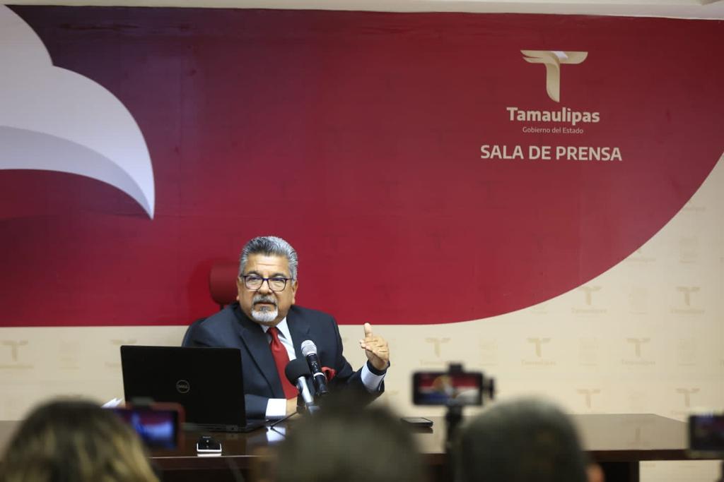 El vocero de Seguridad de Tamaulipas, Jorge Cuéllar Montoya, presentó en conferencia de prensa las estadísticas que emite el SNSP de forma mensual, medición que se hace en 98 delitos del fuero común, de los cuales ocho se consideran delitos de alto impacto.