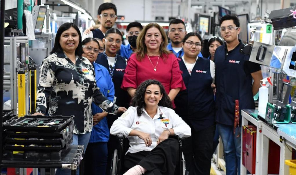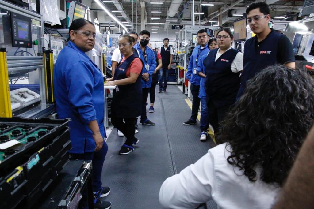 Olga Sosa Ruíz, titular de la dependencia, en compañía del director general del Centro de Conciliación Laboral José Ives Soberón Mejía, realizó esta visita y recorrido por las instalaciones de la empresa que cuenta con una plantilla laboral de mil 200 personas y se dedica a la elaboración de autopartes eléctricas, para automóviles de marcas diversas de alta gama en el mercado mundial.