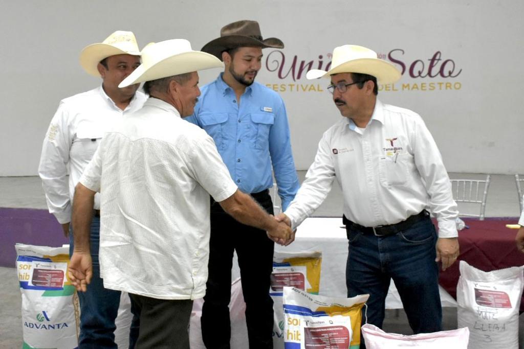 Soto la Marina, Tamaulipas.- Los pequeños productores de los municipios de Soto la Marina y Abasolo, recibieron por parte del Gobierno del Estado, más de nueve toneladas de semilla de sorgo y maíz, con el propósito de reducir los costos de producción y a su vez el fortalecer la productividad agrícola.