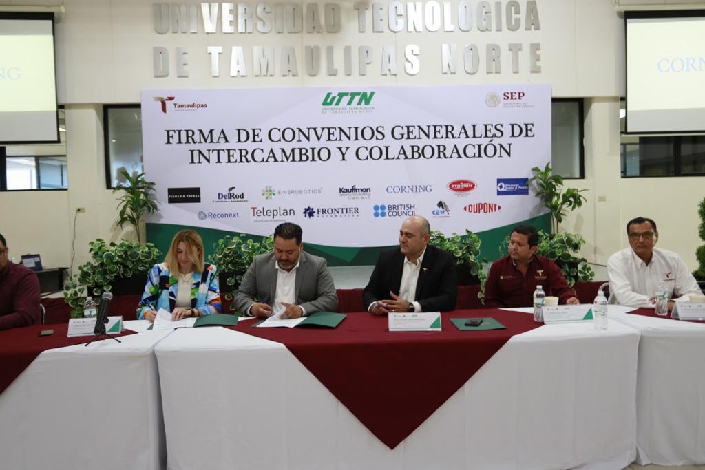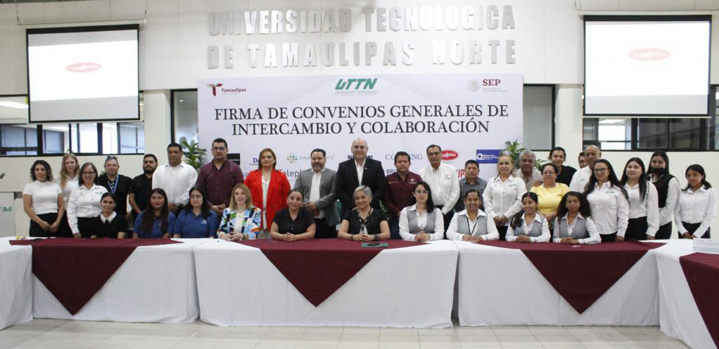 Reynosa, Tamaulipas.- La Universidad Tecnológica de Tamaulipas Norte (UTTN) y empresas importantes establecidas en Reynosa firmaron una serie de convenios generales de intercambio y colaboración, con el objetivo de realizar actividades conjuntas en beneficio de la comunidad universitaria.