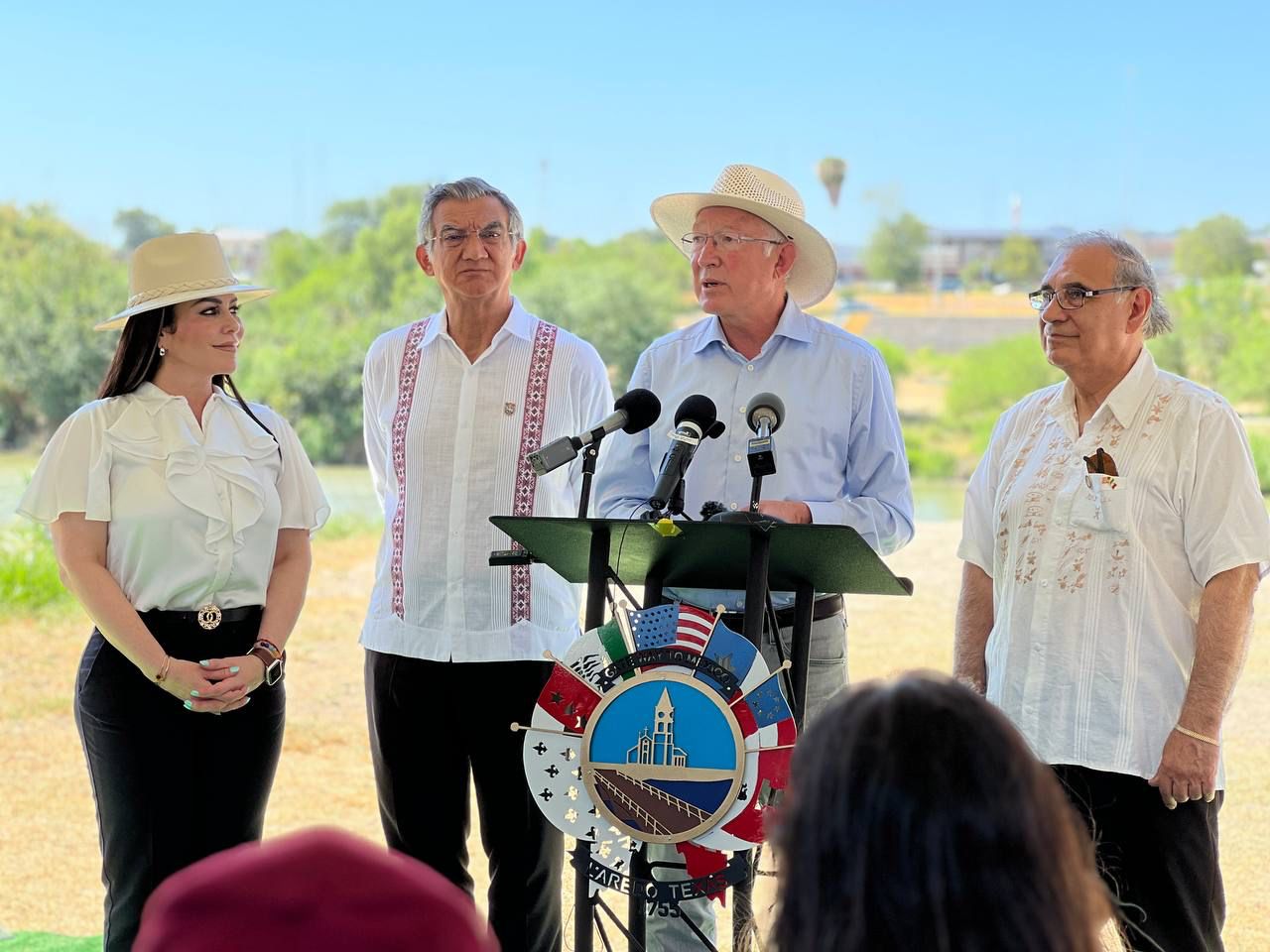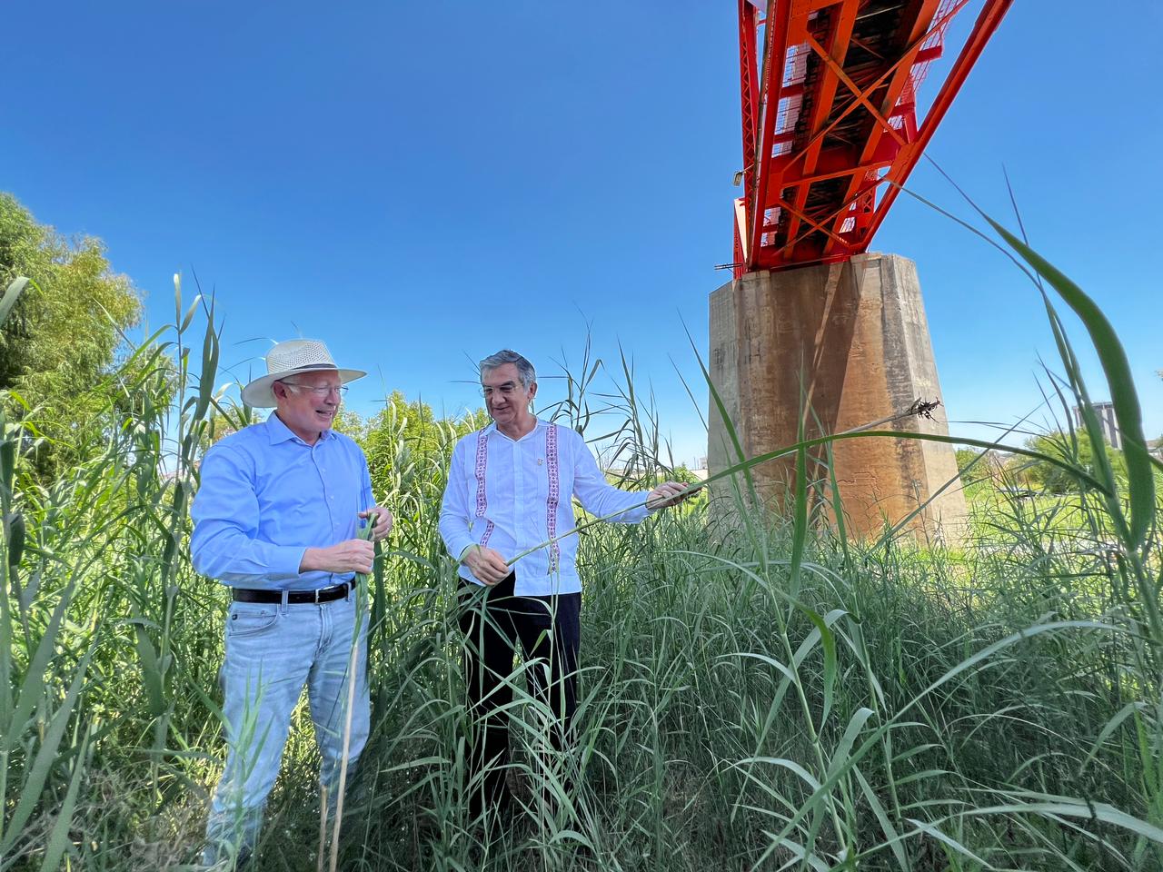 En una rueda de prensa, en las márgenes del río Bravo, en el lado americano y luego de una reunión privada y de realizar un recorrido por el sendero Las Palmas, abajo del Puente Internacional 2, para conocer el proyecto del Parque Binacional, el embajador de los Estados Unidos en México y el gobernador de Tamaulipas coincidieron en la importancia de impulsar de manera conjunta lan relación entre México y Estados Unidos.