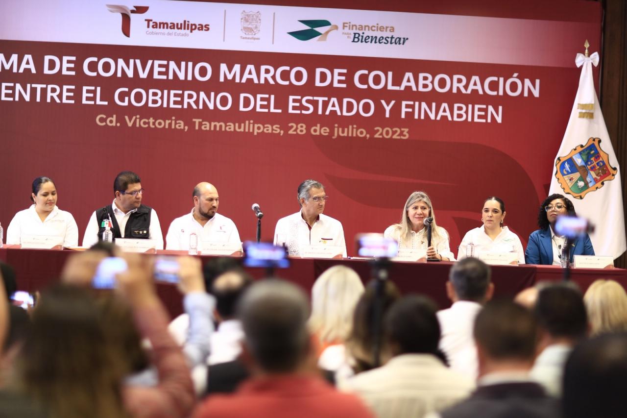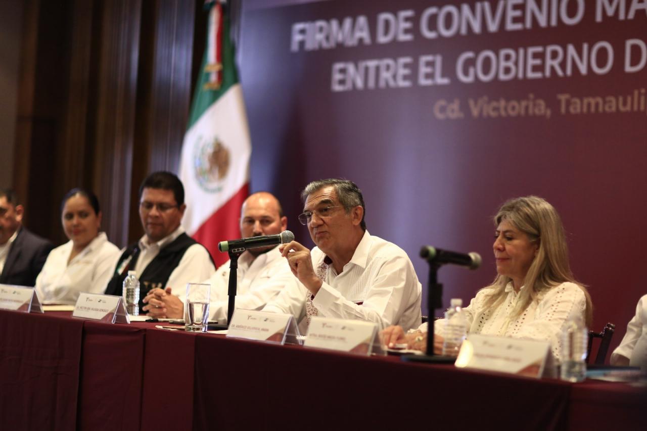 “Nos da gusto que firmemos un convenio más de colaboración entre el Estado de Tamaulipas y la Federación, cuyo fin es traducir el bienestar y el desarrollo social de los y las tamaulipecas”, expresó.