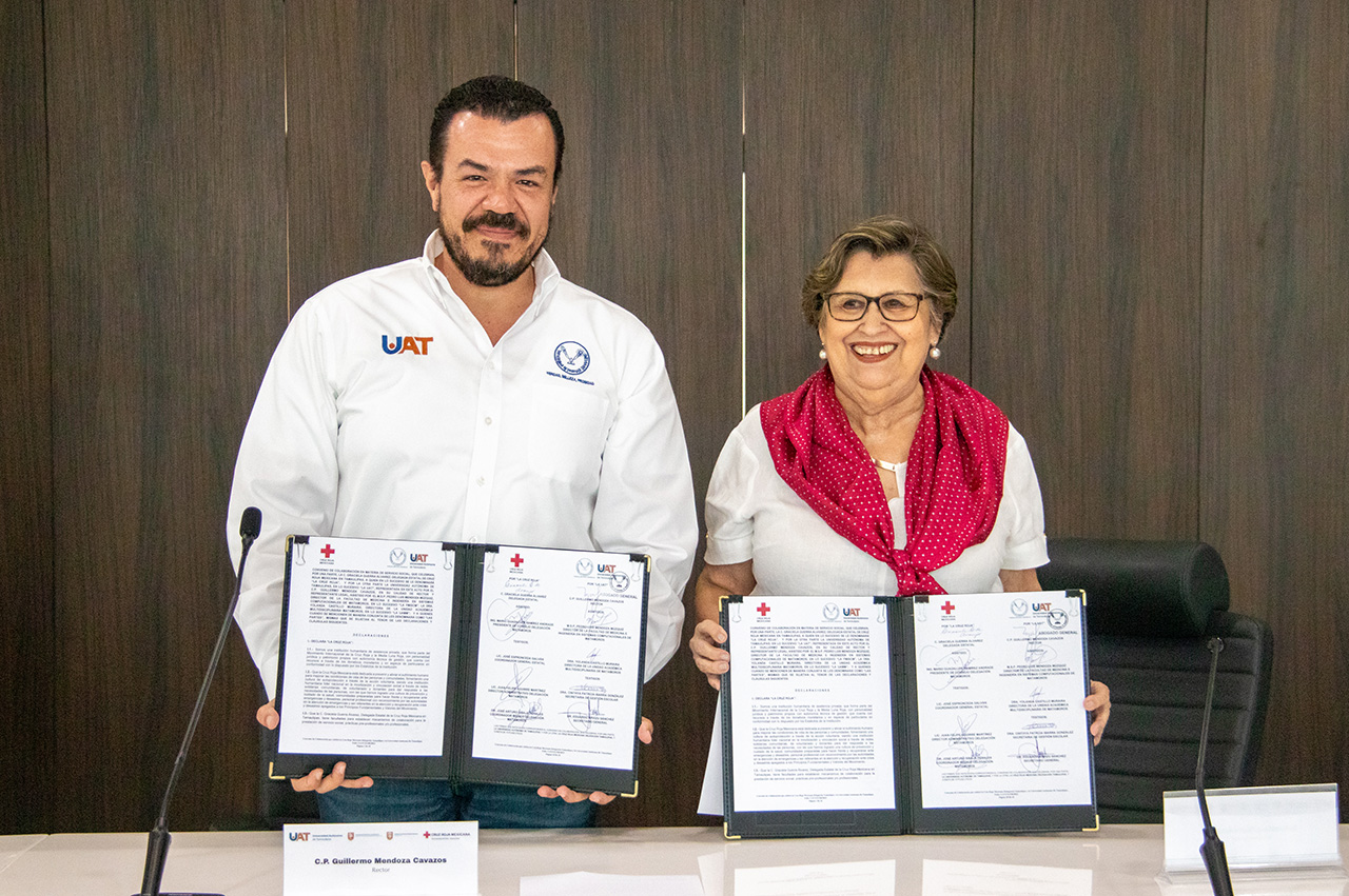 La Universidad Autónoma de Tamaulipas (UAT) y la delegación estatal de la Cruz Roja Mexicana formalizaron un convenio de colaboración que permitirá a los prestatarios de servicio social de las carreras de Medicina, Enfermería y Psicología de Matamoros apoyar en las acciones que realiza la benemérita institución.