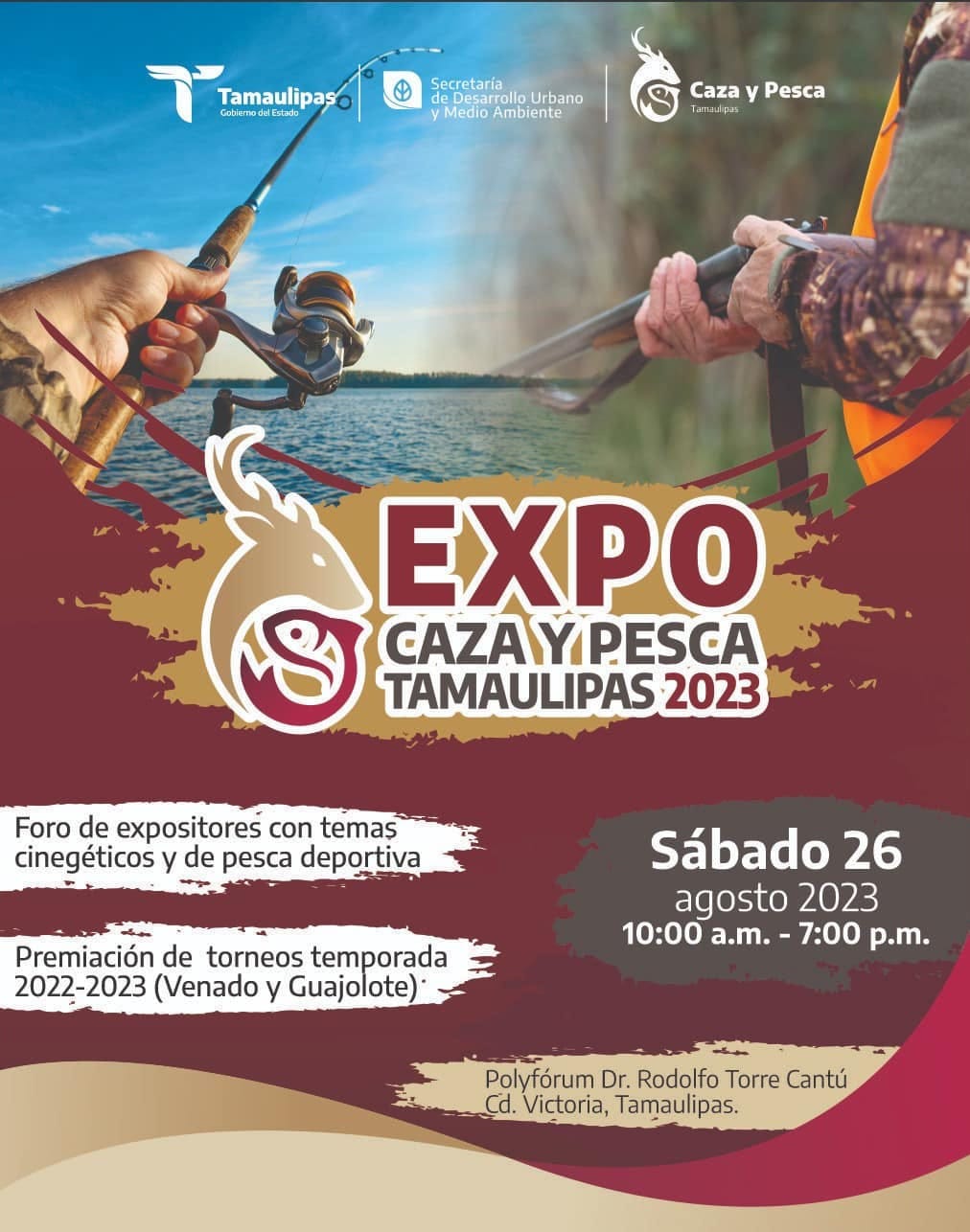 Ciudad Victoria, Tamaulipas. - Dando un paso clave para promover el turismo cinegético y de pesca, actividades que históricamente han sido fundamentales para la economía y la identidad de Tamaulipas, el sábado 26 de agosto se llevará a cabo la primera edición de la "Expo Caza y Pesca 2023", evento que se desarrollará en el Polyformun de Ciudad Victoria de las 10:00 a las 19:00 horas.