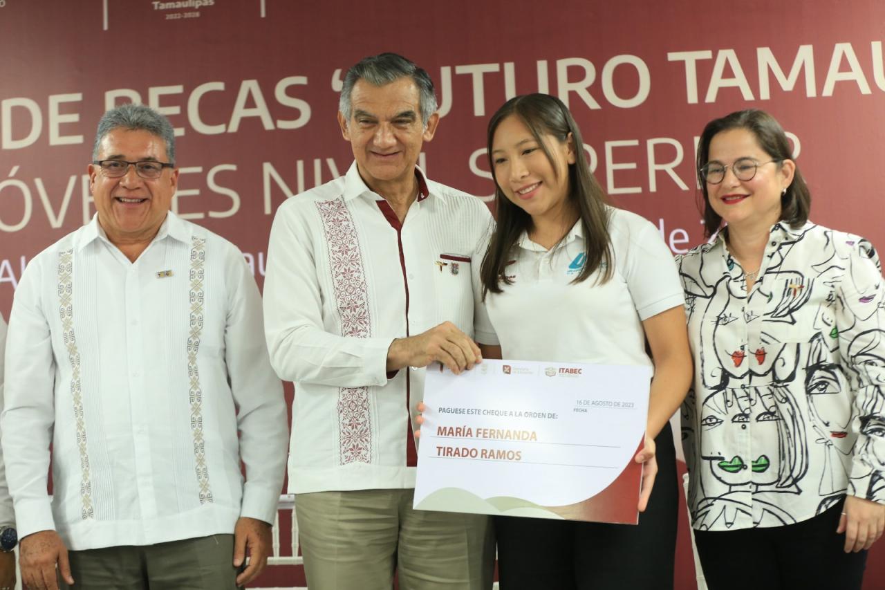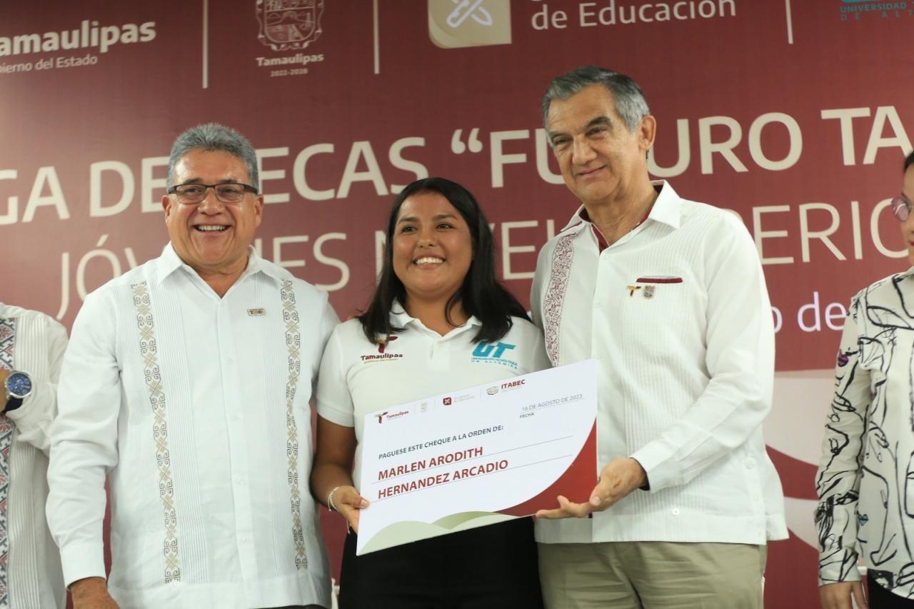 En el evento, Lucía Aimé Castillo Pastor, secretaria de Educación en el estado, dio a conocer que 8 mil 748 estudiantes de nivel superior cuentan con una beca del gobierno de Tamaulipas y aseguró que con estas acciones, Américo Villarreal está garantizando el cumplimiento al derecho constitucional que tienen los jóvenes a una educación integral y de excelencia.