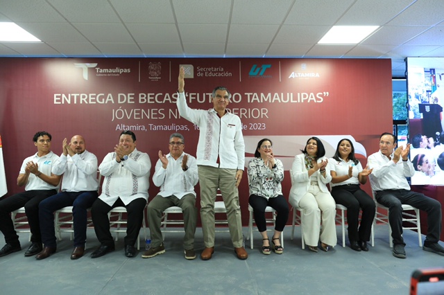 Altamira, Tamaulipas.- En Tamaulipas más 100 mil estudiantes reciben un apoyo a través de programas de la Federación, con una derrama de 900 millones de pesos, por eso el Gobierno del Estado no se quiere quedar atrás y a través del Instituto Tamaulipeco de Becas, Estímulos y Créditos Educativos (ITABEC), ha hecho un esfuerzo para dar más de 28 mil 400 becas, también a jóvenes distinguidos que tienen un espíritu de superación, afirmó el gobernador Américo Villarreal Anaya.