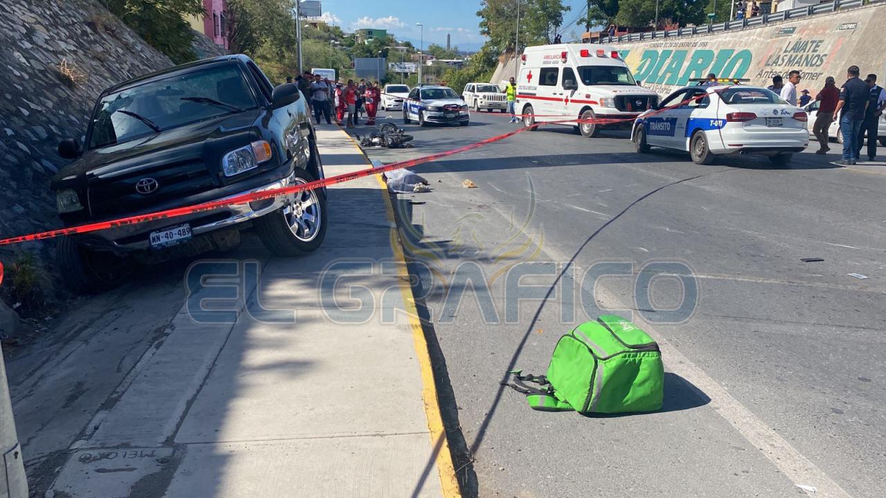 El trágico accidente ocurrió cuando una mujer a bordo de una camioneta marca Toyota tipo Tundra salió de la calle Simón Bolívar de la Colonia Horacio Terán para incorporarse a los carriles en sentido de sur a norte del Bulevar Fidel Velázquez.