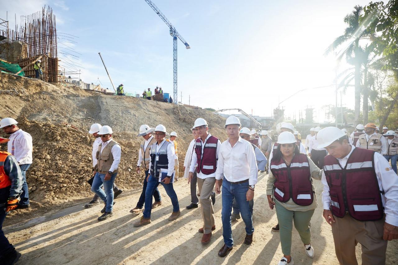 Acompañado por los alcaldes de Tampico y de Altamira, Jesús Nader y Armando Martínez, respectivamente; por el secretario de Obras Públicas, Pedro Cepeda Anaya y el secretario de Salud, Vicente Hernández Navarro, el gobernador Villarreal Anaya, recorrió las instalaciones en donde se registra un importante avance y a la vez, dio instrucciones para atender algunas peticiones por parte de los constructores.
