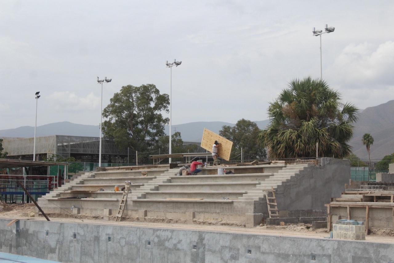 Los trabajos que se tienen en el proyecto, incluyen la reconstrucción total del área de alberca, renovación de tuberías, del cuarto de máquinas, filtro de bombas y de todo el sistema hidráulico; además de la rehabilitación de los vestidores y módulos sanitarios, construcción de gradas para espectadores, bodegas, de firme en perímetro de la alberca, una plaza cívica y reja perimetral del área acuática.
