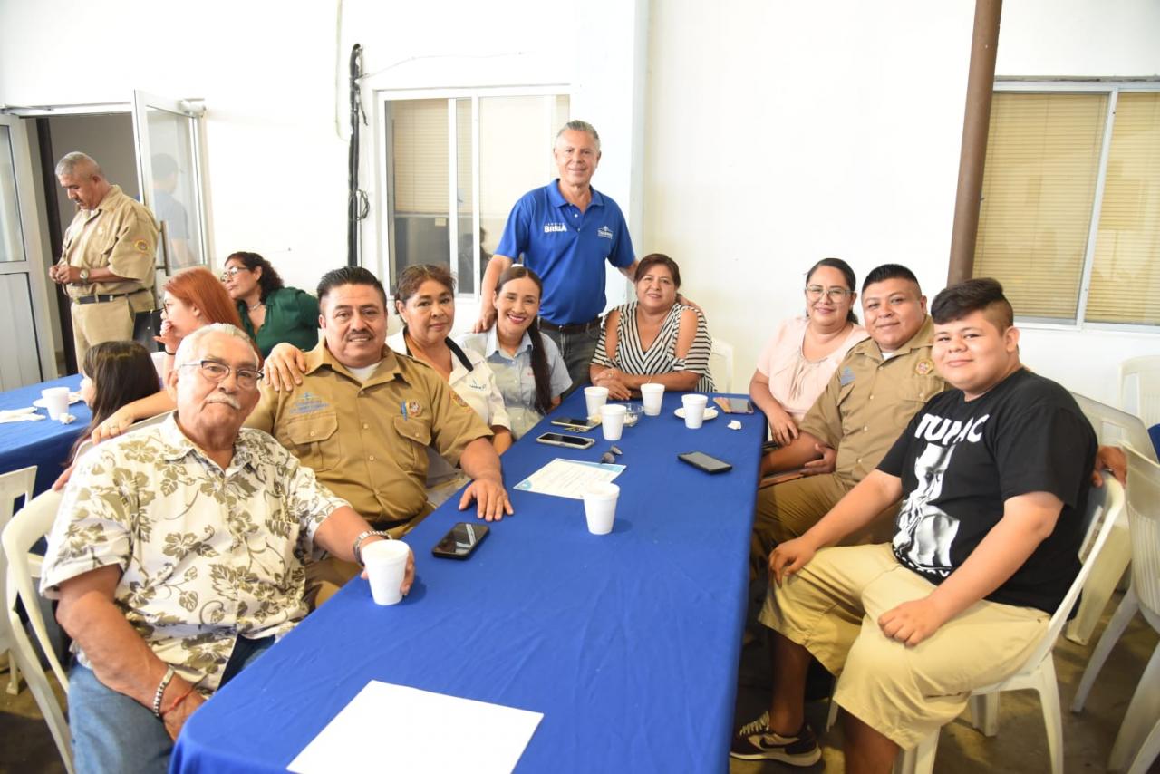 El jefe de la comuna, estuvo acompañado por el titular de Protección Civil, Pedro Romero Sánchez; el Secretario de Servicios Públicos, Pepe Schekaibán; el Jefe de Bomberos, Juan Hernández y el Regidor Presidente de la Comisión de Protección Civil, Homero Peraza Guerra.