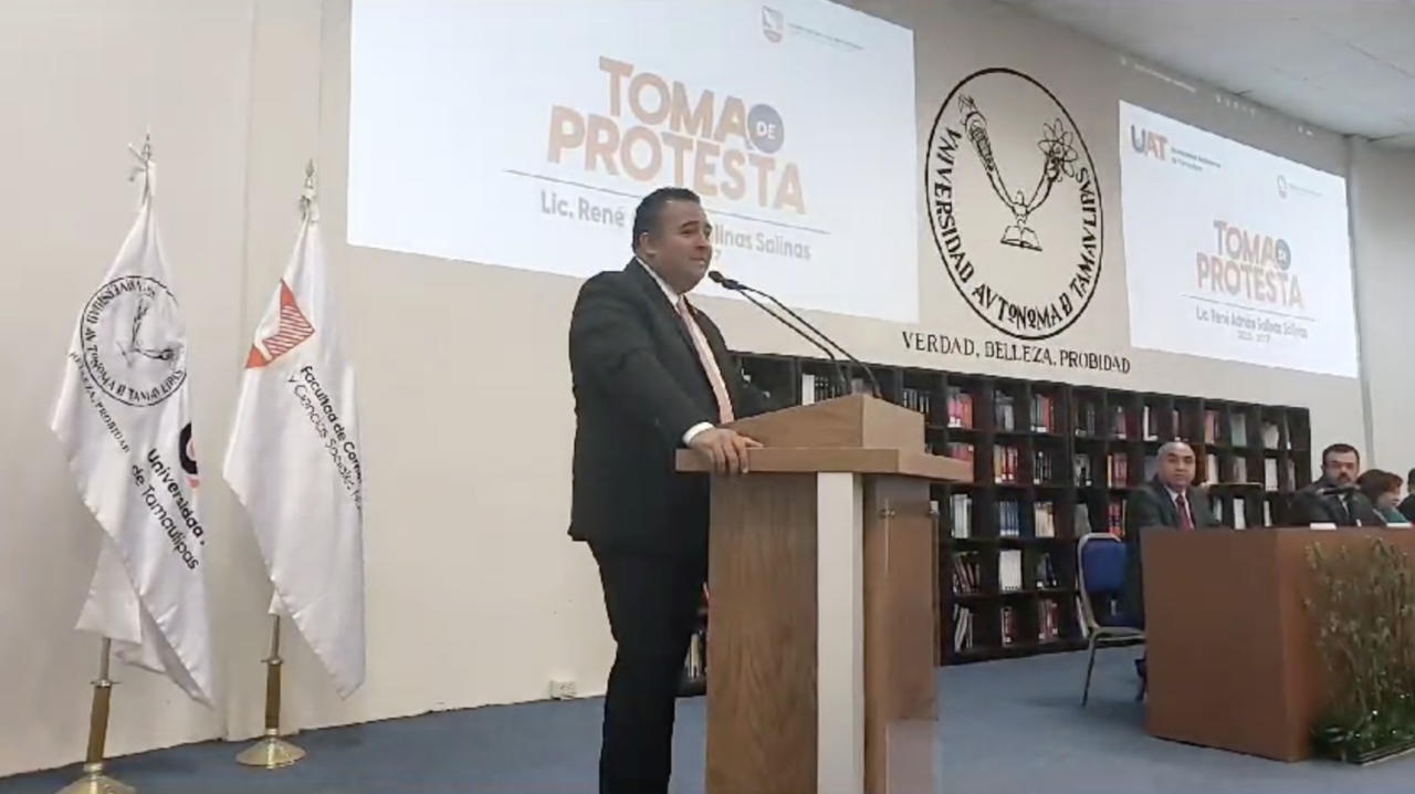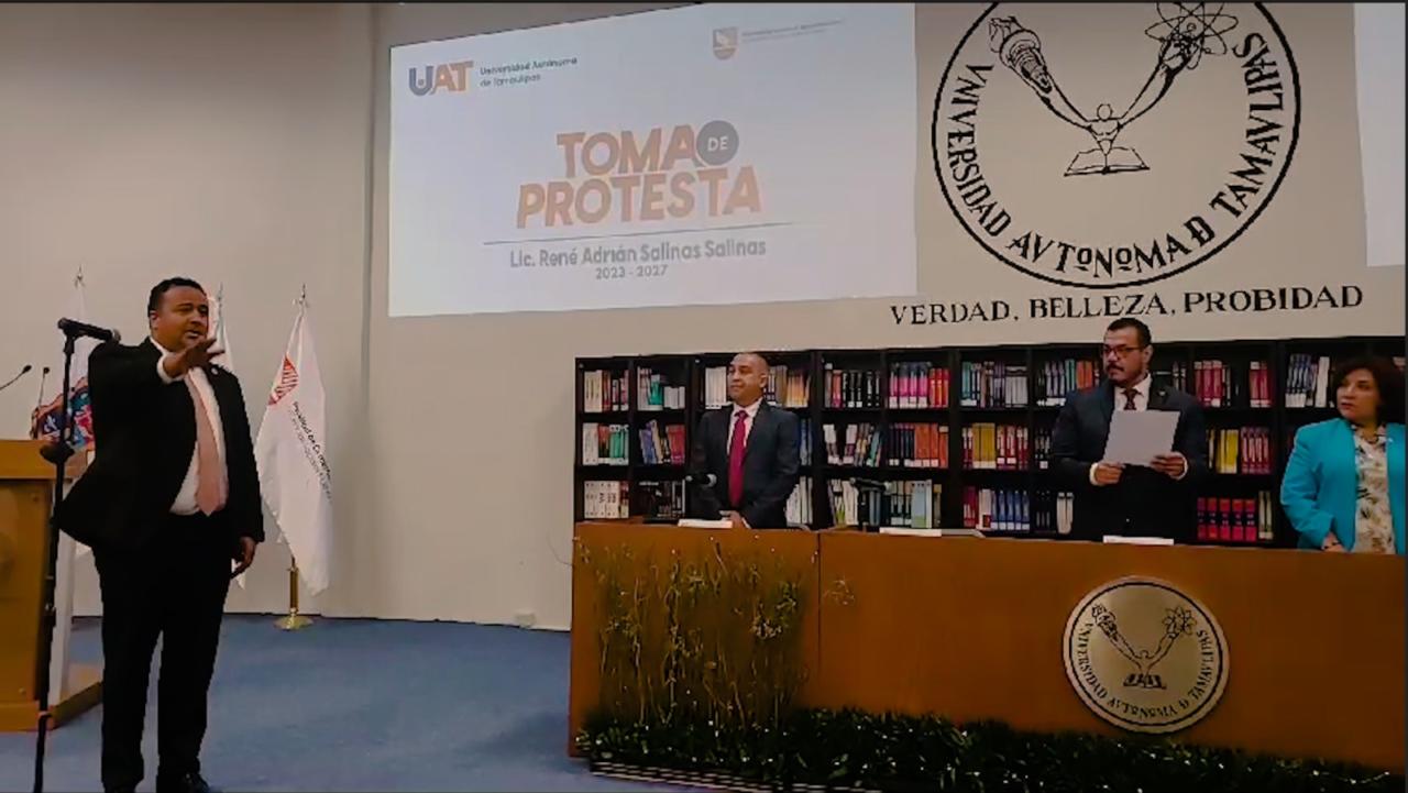 El rector de la Universidad Autónoma de Tamaulipas (UAT), C. P. Guillermo Mendoza Cavazos, le tomó protesta al Mtro. René Adrián Salinas Salinas como director de la Facultad de Comercio, Administración y Ciencias Sociales de Nuevo Laredo (FCACS) para el período 2023-2027.