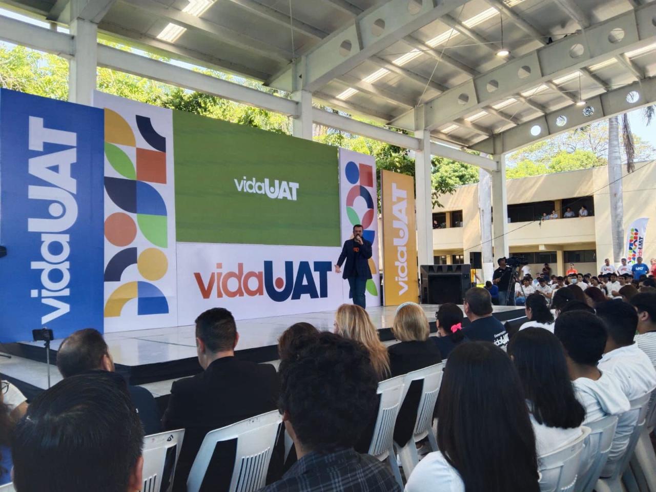 Como parte del recorrido que está realizando por los diferentes planteles de la Universidad Autónoma de Tamaulipas con motivo del inicio de clases y la bienvenida a la comunidad estudiantil, el rector Guillermo Mendoza Cavazos presentó el programa Vida UAT a universitarios de El Mante.
