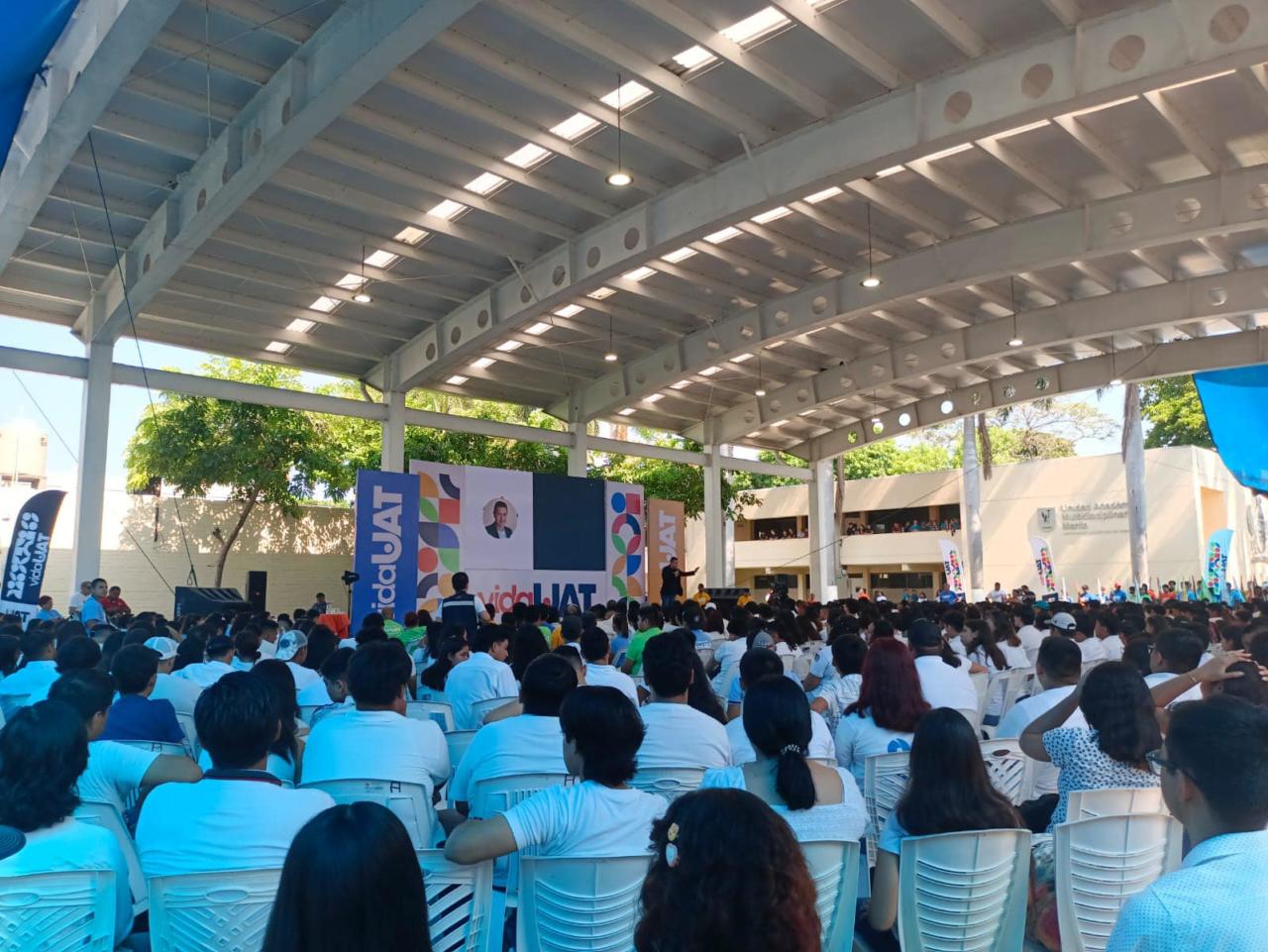 En ese contexto, el rector Guillermo Mendoza Cavazos dio el mensaje de bienvenida y compartió a los universitarios los objetivos del programa Vida UAT, invitándolos a que aprovechen todas las oportunidades y experiencias que les ofrece la casa de estudios para fortalecer su formación integral y educación de calidad.