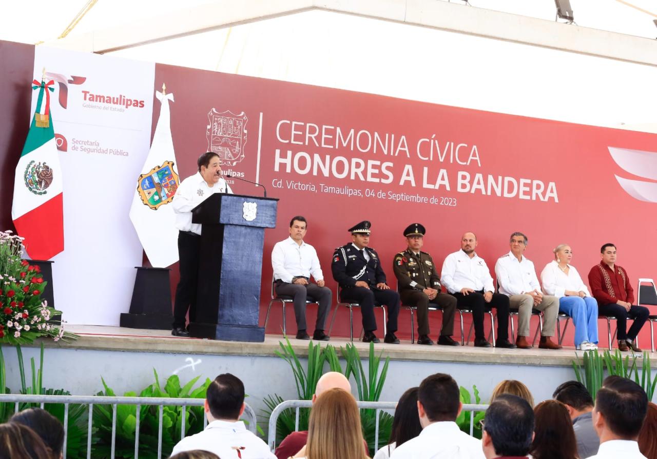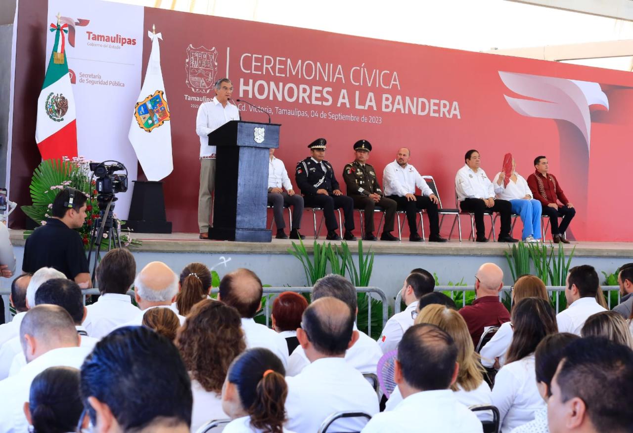 En esta ceremonia también acompañaron al gobernador: Héctor Joel Villegas González, secretario general de Gobierno; el diputado Marco Antonio Gallegos Galván, presidente de la Comisión de Seguridad Pública, Prevención y Reinserción Social del Congreso local; Adriana Lozano Rodríguez, secretaria de Finanzas; el general Uriel Carreto Montoya, en representación del comandante de la 48a. Zona Militar; el inspector general, Fernando Meneses Martínez, representante de la Guardia Estatal y Eduardo Gattás Báez, alcalde de Victoria.