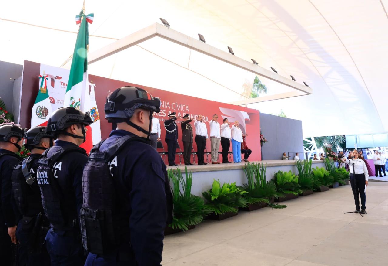 Durante la ceremonia de honores el juramento a la bandera estuvo a cargo de la sub oficial, Claudia Núñez Álvarez, mientras José Luis Álvarez Almazán y Luis Francisco Sandoval Tapia dieron lectura a las efemérides de la semana.