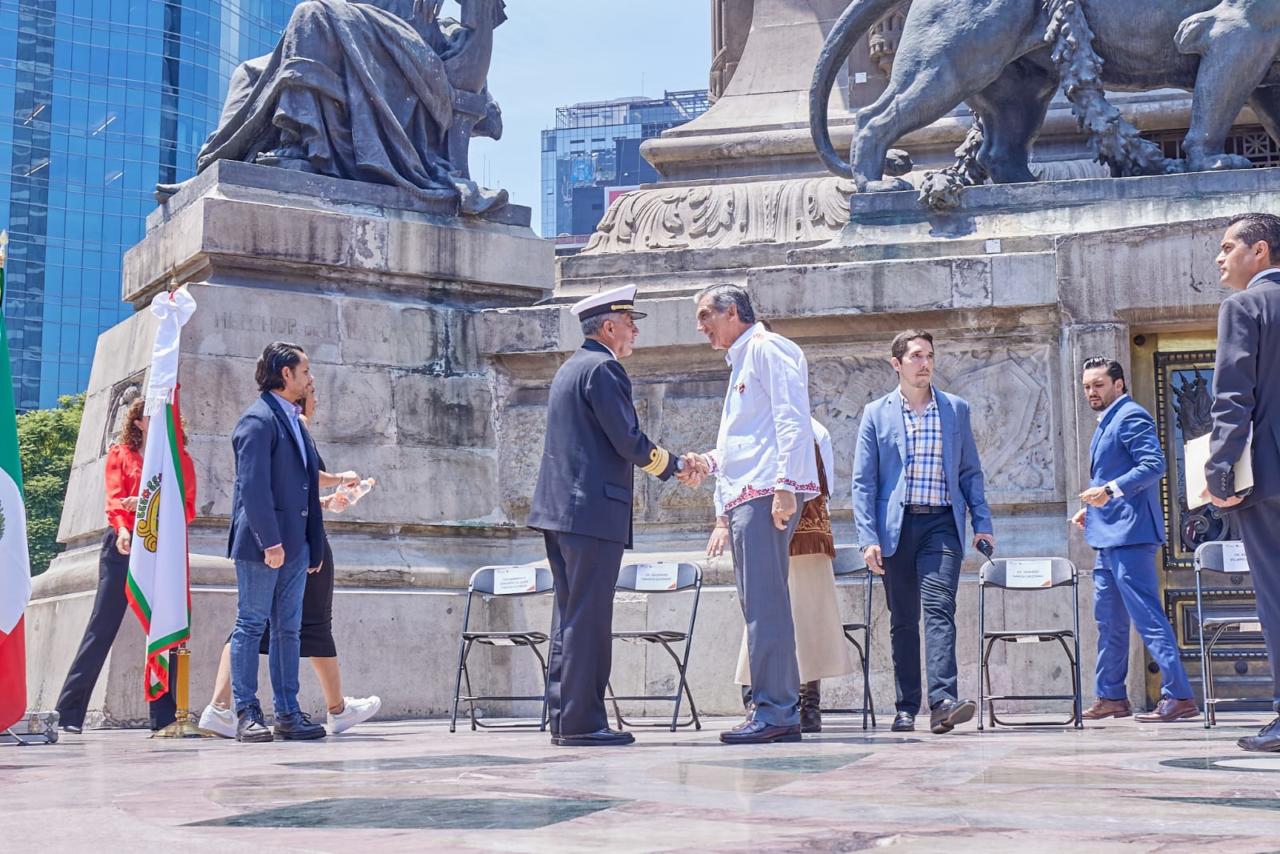 Ciudad de México.- Desde el Ángel de la Independencia y al conmemorar el 194 aniversario de la Batalla de Tampico del 11 de septiembre de 1829, el gobernador Américo Villarreal afirmó: "desde Tamaulipas, hermanados con pueblo y gobierno de Veracruz, venimos a recordarle a México, que la transformación continúa y debe continuar".