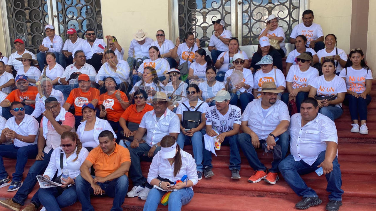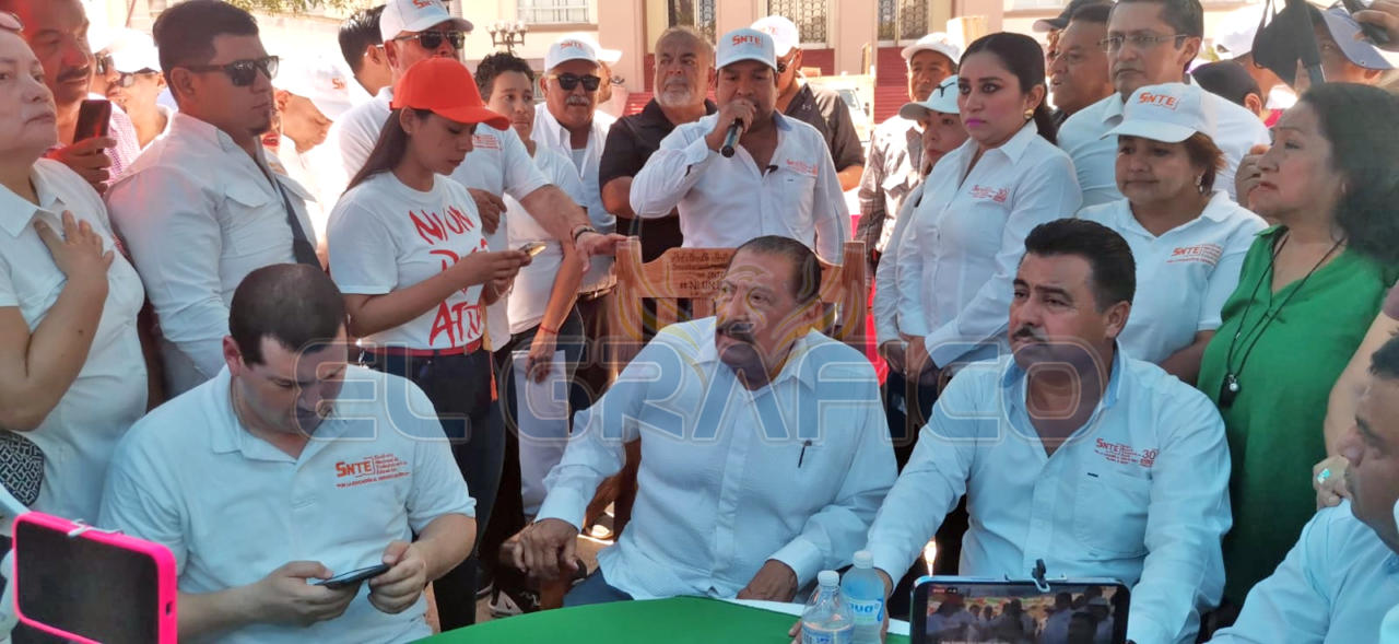 El Secretario General de la Sección 30 del SNTE reiteró su exigencia al Gobernador del Estado y señalo; "nosotros no venimos a pelear con nadie, venimos a decirle a la autoridad estatal que el problema no es con él, y que no agarren otro rumbo, lo que queremos es que no tenemos nada qué hacer con las autoridades que están en educación, nada más".