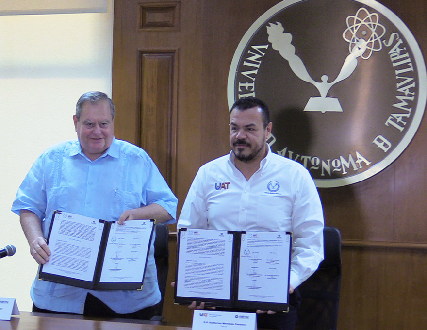 La Universidad Autónoma de Tamaulipas (UAT) firmó un acuerdo de colaboración con la Asociación de Industriales del Sur de Tamaulipas, A.C. (AISTAC), que permitirá fortalecer la vinculación y desarrollar proyectos de investigación que impacten de manera positiva en esta zona de la entidad.
