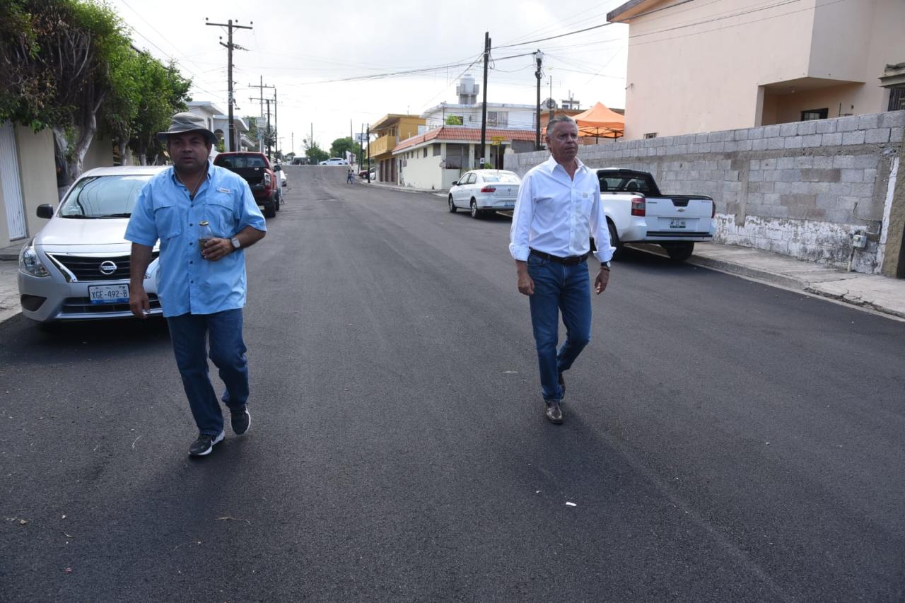 A fin de mejorar la movilidad en la colonia Hospital Regional, el Ayuntamiento de Tampico lleva a cabo los trabajos de pavimentación a base de carpeta asfáltica en la calle Dr. Ignacio Chávez, principal ruta de acceso a este sector colindante a la Avenida Universidad.