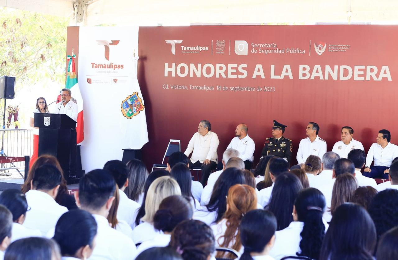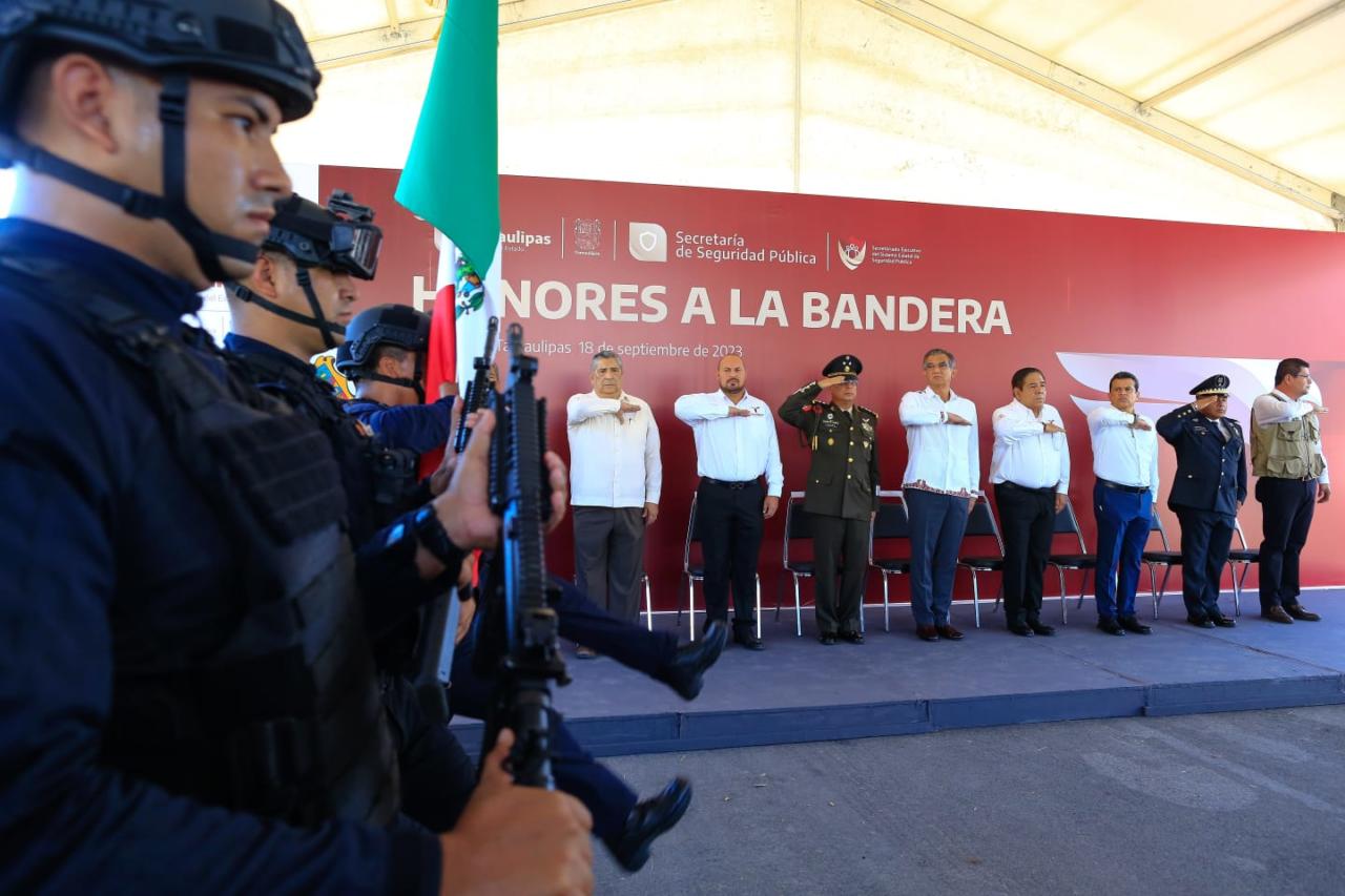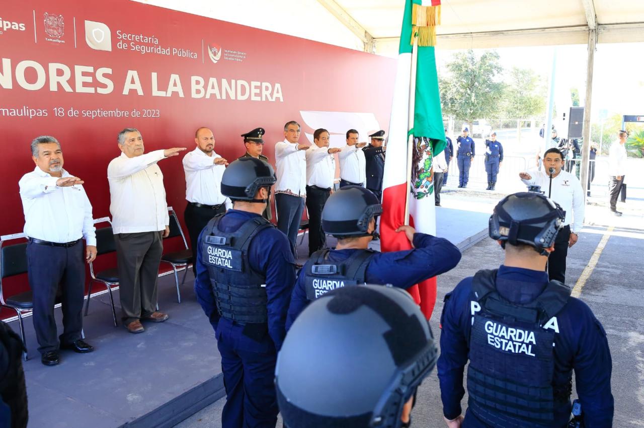 Durante los honores acompañaron al gobernador en el presidium: el secretario general de Gobierno Héctor Joel Villegas González; el secretario de Seguridad Pública, Sergio Chávez García; general Julio César Islas Sánchez , comandante de la 48a. Zona Militar; el inspector Fernando Meneses Martínez, en representación de la Guardia Nacional en Tamaulipas; el presidente municipal Eduardo Gattás Báez; Luis Lauro Reyes Rodríguez, delegado de Programas Federales para el Desarrollo y el vicefiscal Miguel Gracia Riestra.