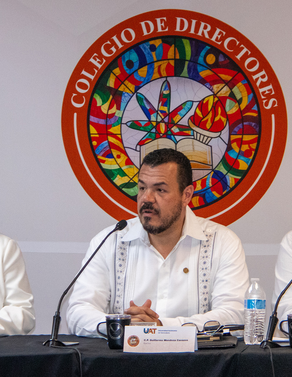 El C. P. Guillermo Mendoza Cavazos, rector de la Universidad Autónoma de Tamaulipas (UAT), presidió en el Centro Universitario Victoria la décima séptima reunión del Colegio de Directores, donde destacó los avances de programas que han sido implementados para dar cumplimiento a las metas trazadas en el Plan de Desarrollo Institucional (PDI).