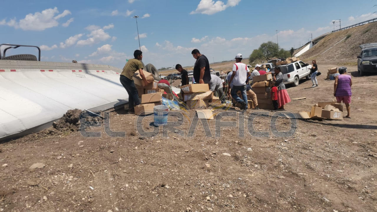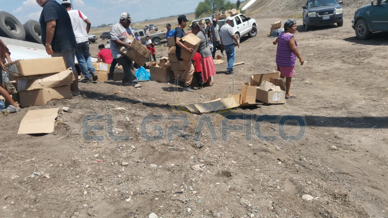 Cabe señalar que al lugar acudió una gran cantidad de personas para hacer “rapiña” con la mercancía que transportaba la pesada unidad.
