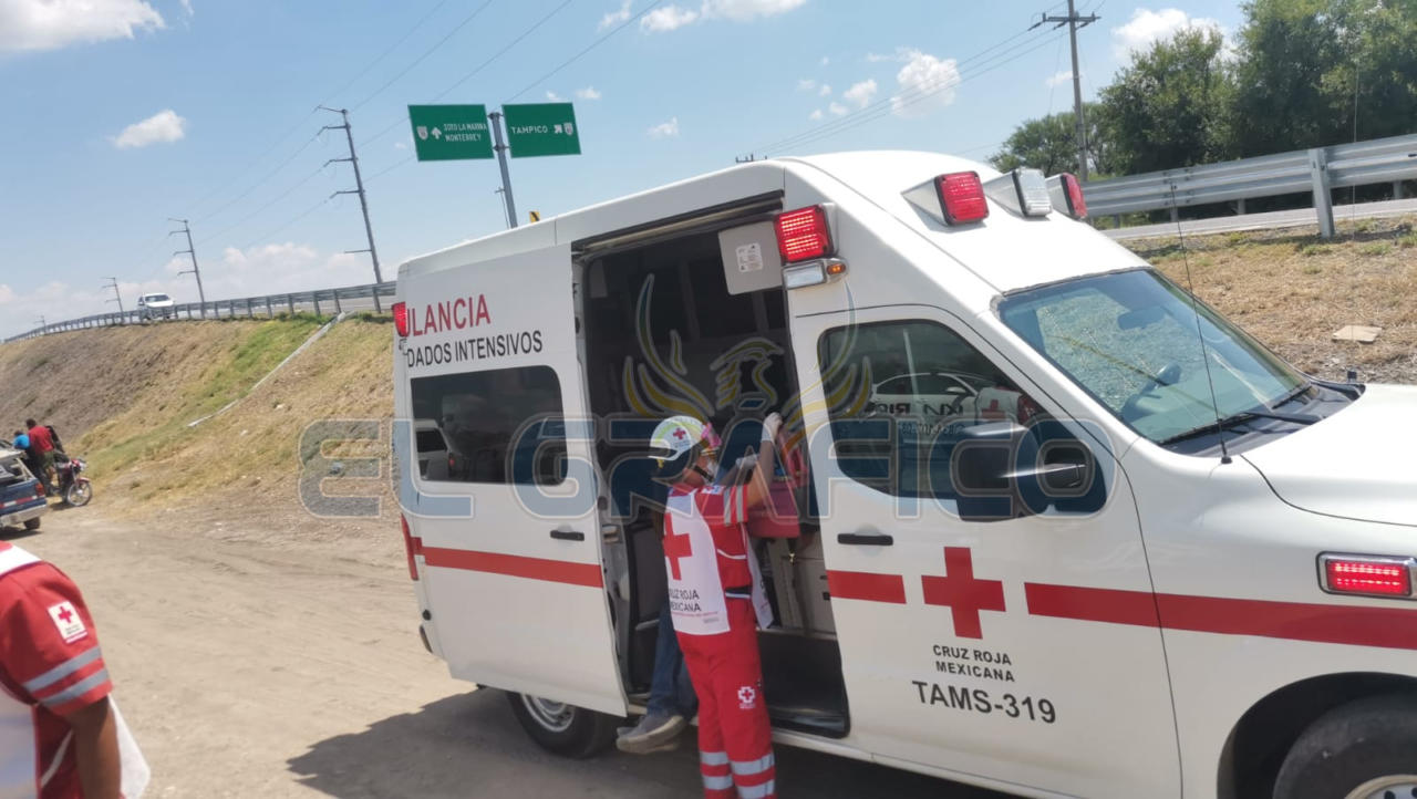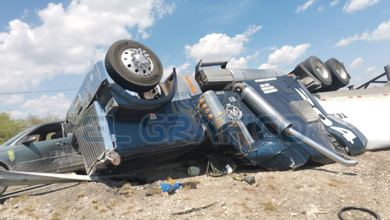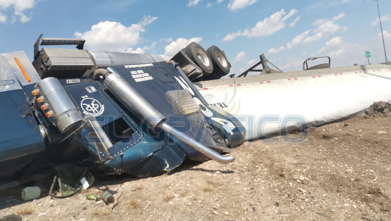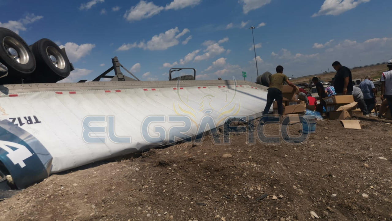 Al transitar por el “caracol” que se encuentra en el entronque con la carretera a Soto la Marina debido presuntamente a una falla mecánica el tráiler desvió su trayectoria hacia su lado izquierdo terminando por volcar.